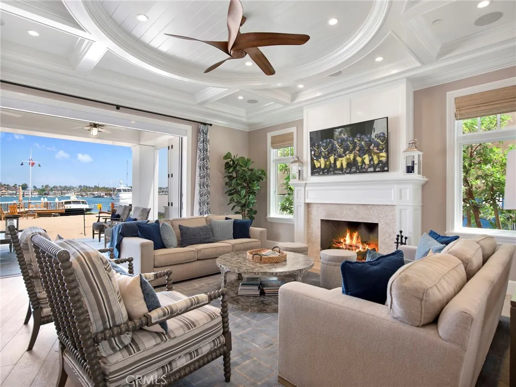 Exquisite panoramic sapphire views are on display from almost every room in this idyllic coastal home. Custom designed by Brandon Architects and completed in 2017 by premier homebuilder Spinnaker Development, this immaculate property has a spacious open floor plan, clean lines, and modern amenities. The luxury residence has a soothing neutral palette of colors and custom finishes throughout, including: a walk-in wine room highlighted with glass walls; custom cabinetry; coffered ceilings; an expansive laundry room with built-in dog bath; and beautiful stone, marble and tile work. The opulent primary suite with balcony has a prominent location highlighting sweeping views of the bay and the peaceful morning sunrise. Three additional oversized bedroom suites, an office, and an attached four-car garage provide spacious accommodations for daily living, while an interior courtyard with a private pool, spa, and water feature, an adjacent billiard or bonus room with a wet bar, a chefs kitchen, and a great room opening to a loggia on the sand, all provide the ideal backdrop for relaxing with family and friends. Disappearing doors open up the entire first floor of the home to the interior courtyard and the beach. This exceptional Cape Cod inspired home sits on one of the largest bayfront lots on Peninsula Point at 7,424 square feet, a corner lot approximately three times the standard bayfront lot, and has only one neighbor to the west. Its expansive private bay beach and dock fronts the largest width of Newport Bay, providing premium views of summer yacht club races through the harbor