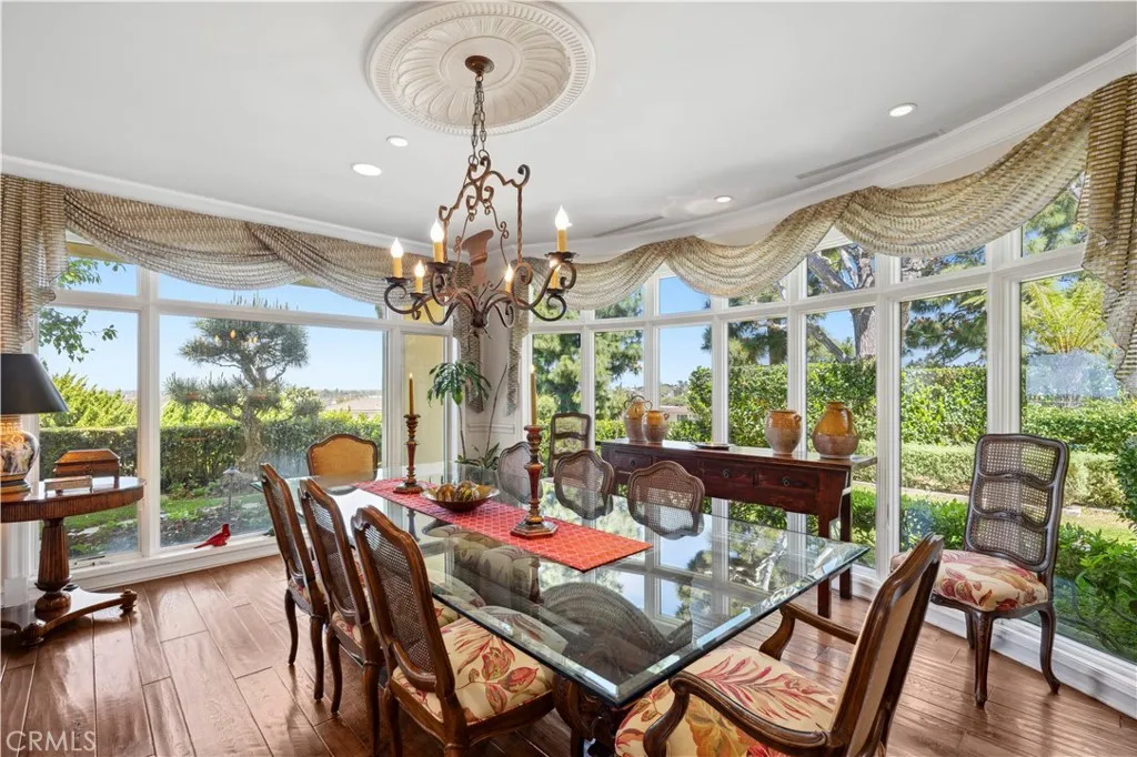 Nestled at the end of a serene cul-de-sac within the guard-gated enclave of Big Canyon, 14 Rue Chantilly redefines timeless luxury. This expanded 4-bedroom, 4.5-bathroom residence spans 4,880 square feet on a private 9,000-square-foot corner lot, blending grand scale with effortless comfort. A gated entry and striking wood-and-glass front door open to a soaring atrium, where a curved staircase and rich wood flooring set an elegant tone. The formal living room, bathed in natural light, boasts nearly 24-foot ceilings, while the adjacent dining room frames elevated city views through walls of windows. At the heart of the home, a chefs kitchen with an expansive island flows into a cozy den and out to a beautifully landscaped backyardperfect for gatherings. Custom wainscoting and hardwood detailing throughout elevate the ambiance. The main-level primary suite is a sanctuary, offering dual walk-in closets and a spa-inspired bath with dual vanities, a soaking tub, and an oversized double shower. Nearby, a sunlit office with built-in cabinetry invites creativity or focus, complemented by a full laundry room for practicality. Upstairs, three generous ensuite bedrooms provide privacy, one with a balcony showcasing Back Bay and city lights and another versatile enough to serve as a second primary suite. Outside, an entertainers haven unfolds with a built-in BBQ, outdoor fireplace, bubbling spa, and lush lawnall seamlessly connected to the home for effortless indoor-outdoor living. The home is positioned to capture the wonderful surrounding views of the city lights and snowcapped mount