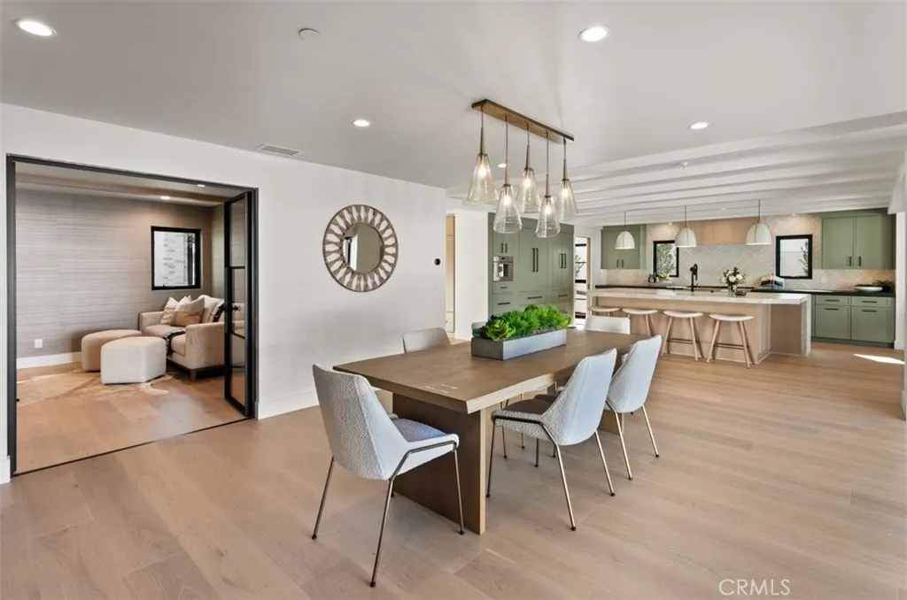 A work of modern art, 1717 Irvine Avenue emerges as a contemporary haven where architecture, nature, and luxury coexist in perfect harmony. Newly reconstructed with uncompromising craftsmanship and a bold artistic sensibility, this residence transcends traditional living. A monumental 10-foot glass pivot door introduces the home with a dramatic reveal: indoor and outdoor spaces collapse into one fluid environment shaped by elemental beauty. A waterfall wall, lush living plant installations, and a mature olive tree bring nature into the core of the home, creating an ethereal threshold that feels both tranquil and unforgettable. Inside, a sweeping open floor plan grounds the homes modern aesthetic. The living room, wrapped in disappearing glass walls, blurs the boundaries between inside and out and flows seamlessly into the gourmet kitchen. Here, custom cabinetry, a hidden walk-in pantry, striking stone surfaces, and top-tier Thermador appliances elevate the space into a functional work of art, anchored by an oversized waterfall quartzite island. The formal dining room glows beneath a statement chandelier and is framed by dual Thermador 92-bottle wine towersan exquisite stage for intimate dinners or grand celebrations. The entertainers backyard extends the modern narrative with a saltwater pool and spa illuminated by micro-LED lighting, a fully realized outdoor kitchen and BBQ, and generous lounge areas. Whether in sunlight or beneath the glow of the evening lights, the outdoor environment evokes the serenity of a private resort. The primary suite serves as a luxurious retrea