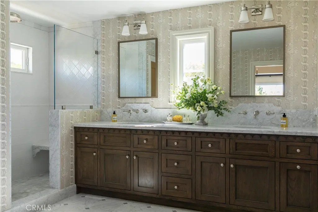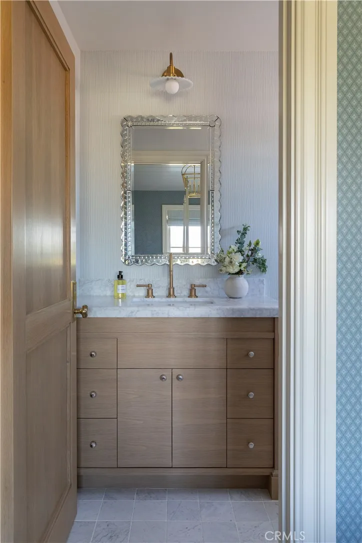 Positioned on the inner loop of the Port Streets in Newport Beach, 1961 Port Cardigan Place introduces a fully reimagined residence defined by elevated design, scale, and seamless indoor-outdoor living. Located near Anderson Elementary and situated on the same street as the schools entrance, the home offers convenient access to the campus within one of the neighborhoods most established settings. Reconstructed in 2025 and designed by Alicia Torosian Design, this residence was featured on the 2026 Corona del Mar Home Tour. Thoughtful design and high-quality craftsmanship are evident throughout, with custom finish carpentry, cabinetry, stonework, wallpaper, and integrated furnishings creating a cohesive and refined interior environment. French white oak extends across flooring, ceilings, doors, shutters, and into the finished garage, reinforcing a consistent architectural aesthetic. Designed for both everyday living and entertaining, the open-concept layout offers a natural flow between living spaces. Each bedroom is appointed with its own ensuite bathroom, providing comfort and functionality. The kitchen serves as a central gathering space, featuring Thermador appliances, an oversized skylight, and a custom backsplash, all opening to the main living areas. The outdoor setting is equally compelling, with a generously scaled backyard offering space for entertaining, recreation, or relaxation. Additional features include on-site RV parking, adding versatility to the property.