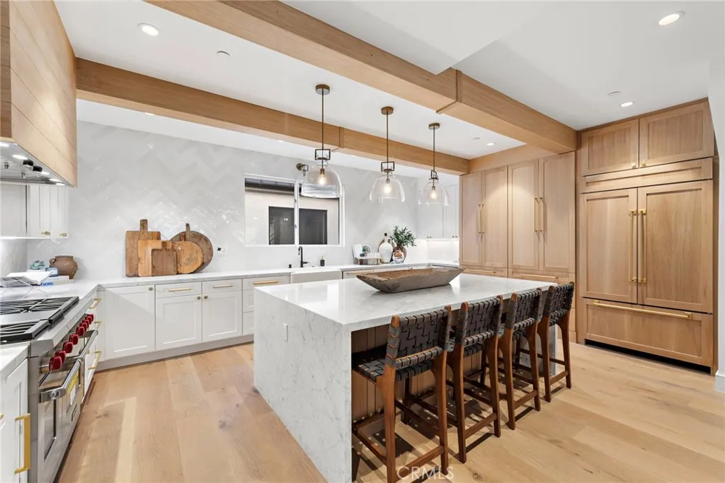 Masterfully designed and built, the Back Bay Townhomes are a collection of extraordinary modern-style homes that boasts an array of features. Primary level hosts the open concept living area that si outfitted with gorgeous wood beams and exquisite finishes. Luxurious European flooring is spread through the entirety of of the home. The gourmet kitchen holds marble countertops, vast waterfall style island, custom cabinetry, and best-in-class appliances, including Wolf range, Sub-Zero refrigerator, and more. An elegant primary suite with beautifully designed bathroom and walk-in closet constructs the third level along with the two remaining bedrooms. The uppermost level consists of a bonus room perfect for any use. Two rooftop decks add for an enhanced indoor/ outdoor flow, whilst providing views. Additional highlights include tremendous location, two car garage, main level area perfect for home office, stylish hardware throughout, and many more. Completely brand new, this home allows for the comfortable lifestyle of Newport Beach, al while boasting the dazzling aesthetics of modern architecture.