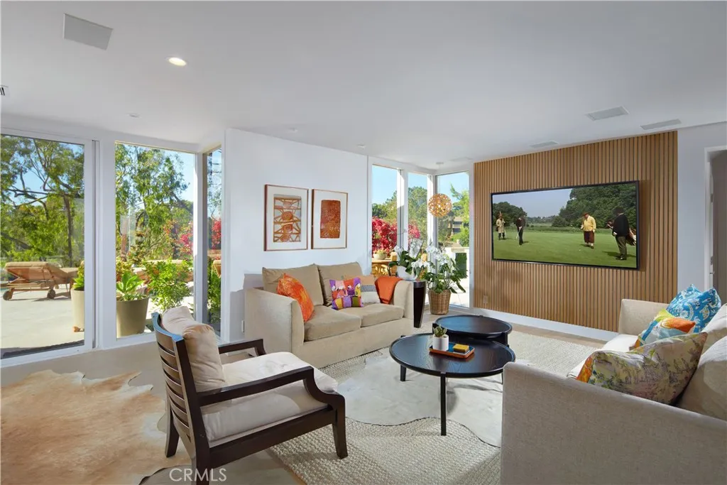 Set within the guard-gated enclave of Big Canyon at the end of a quiet cul-de-sac, this recently remodeled (2025) home impresses with grand proportions and timeless charm. Introduced by a beautifully landscaped front courtyard, the four-bedroom residence offers refined interiors of approximately 4,003 square feet, expansive outdoor spaces, and a coveted position along Big Canyon Country Clubs 6th fairway. Filled with natural light from skylights, the thoughtful floorplan includes a formal sitting room anchored by a stacked-stone fireplace and framed by expansive windows, as well as a separate media lounge. Further along, a glass-enclosed, temperature-controlled 1,800-bottle wine cellar serves as a showpiece for the collector. The chefs kitchen features Neolith Calacatta Gold countertops, rift white oak cabinetry, 6-burner Wolf range, Sub-Zero Max refrigeration, a Zip Tap for instant boiling/chilled/sparkling water, and a built-in Miele coffee system, flowing seamlessly to both the formal dining area and sprawling backyard. Outside, the setting is designed for year-round entertaining, with an infinity-edge pool and spa, multiple spaces for lounging and dining, and an outdoor kitchen with Viking grill. A tranquil primary suitecomplete with a fireplace, dual vanities, walk-in shower, and stone-wrapped soaking tuboccupies the main level along with a private office, two additional ensuite bedrooms, powder room, and laundry room. Upstairs, the second primary suite presents a Japanese soaking tub, separate shower, dual walk-in closets, and private balcony that floats above the fai