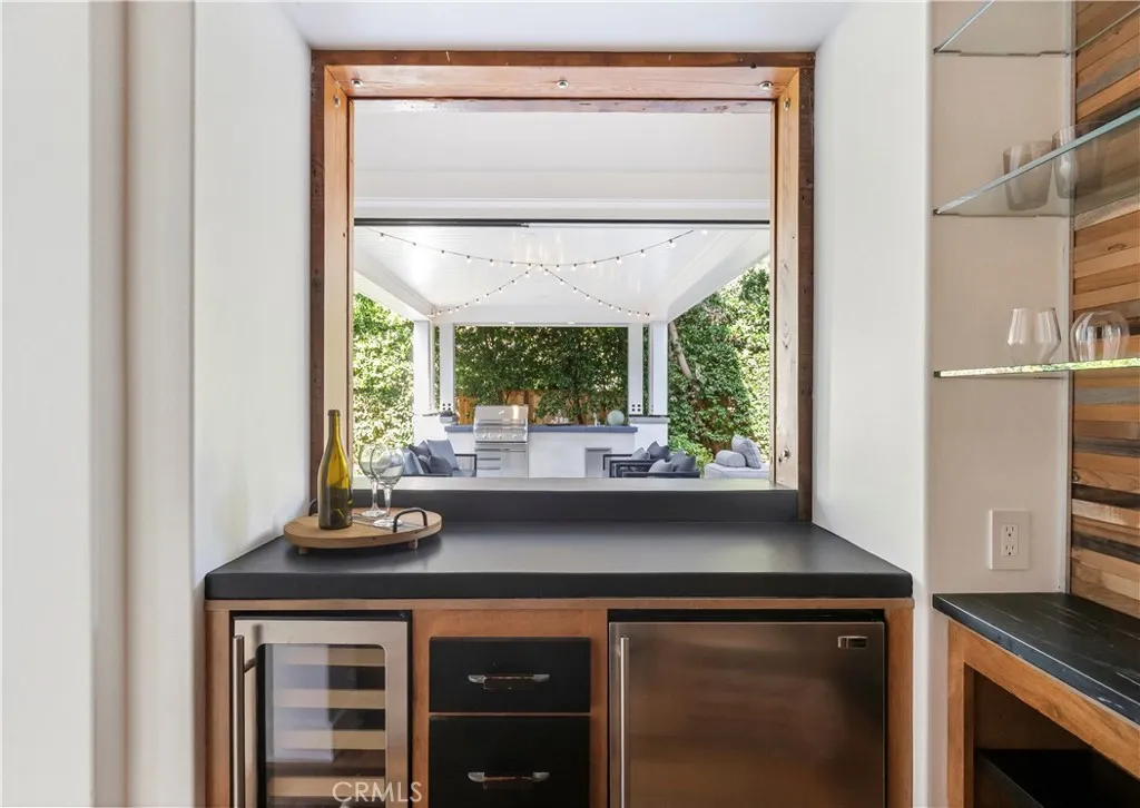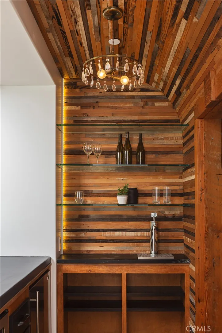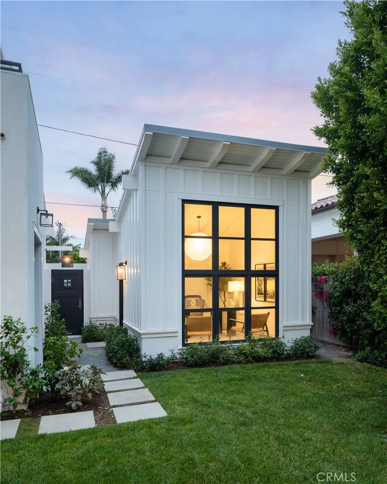 Welcome to 2217 Laurel Place a bespoke architectural gem tucked away on a quiet cul-de-sac in coveted Newport Heights. Inspired by the clean lines and warmth of a Swedish coastal retreat, this one-of-a-kind home (Hem in Swedish) was designed to honor the natural elements. Built thoughtfully with sustainable, zero waste construction and careful selections throughout, the striking vertical lines, a bold asymmetrical roof, and clerestory windows form a sculptural silhouette dramatic yet harmonious flooding interiors with natural light while celebrating the outdoor spaces. Inside, the vaulted living room makes a statement with tongue-and-groove ceilings, exposed beams, and a central fireplace flanked by inset French doors. Reclaimed wood floors flow through to the dedicated dining space, chefs kitchen and wrap-around bar all connected by oversized sliding glass pocket doors opening onto the lush, inviting yard. The kitchen is a study of form and function featuring natural soapstone countertops, Wolf range, Sub-Zero refrigerator, dual farmhouse sinks, walk-in pantry, and a custom, hand-sourced light fixture. Outside, the mature trees and garden provide a beautiful private backdrop for enjoying the perfect Newport Beach climate. The covered patio with built-in BBQ and adjacent fire pit area creates a setting perfect for gathering, lounging and celebrating under the stars. Upstairs, two bedrooms (one with a balcony) feature walk-in closets and a Jack-and-Jill bath, while a third bedroom enjoys a private en-suite. A cozy loft nook provides space for reading or play. The primary sui