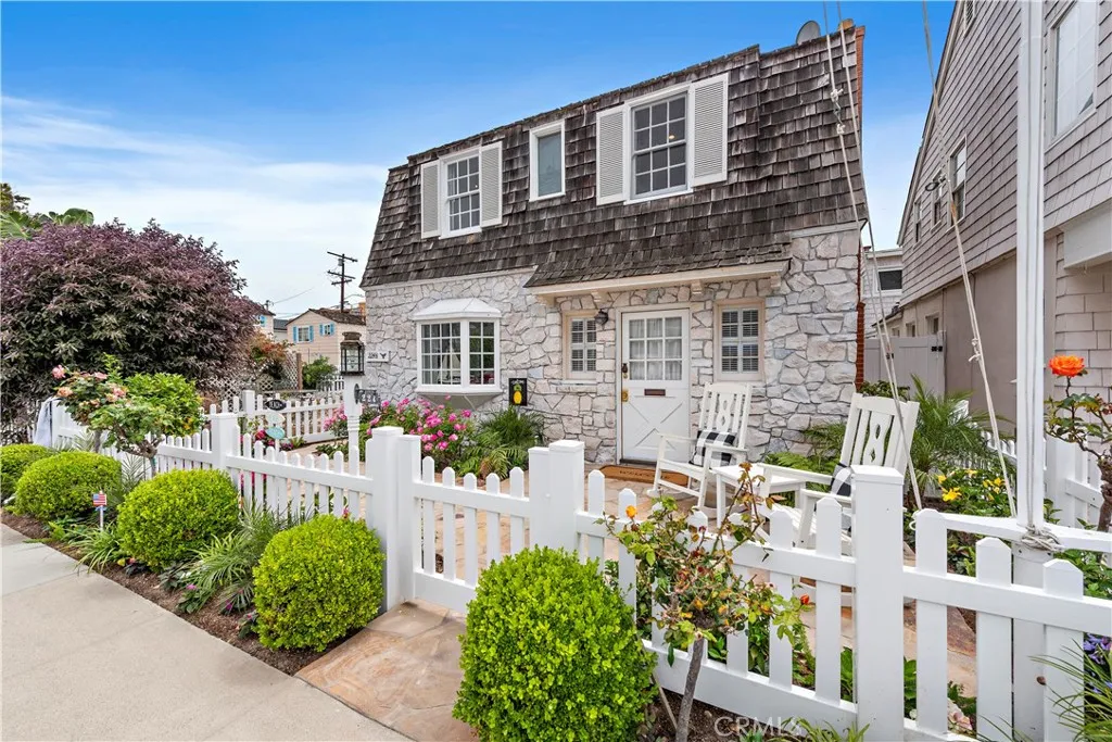 Located on world famous Balboa Island, this enchanting cottage by the sea is right out of a storybook! The front 3bdrm/3bath house features one bedroom and bathroom downstairs, 2 bedrooms/ 2 bathrooms upstairs. A fenced-in patio is the perfect place to begin or end your day. The Dutch door lets guests enjoy ocean breezes in the living and dining area with lots of natural light, fireplace and built-in bookcases and window seats. The remodeled kitchen features a 6-burner gas range, microwave, stainless steel refrigerator, quartz and butcher block countertops. Primary suite has an en suite bathroom. All bathrooms are newly remodeled and new AC has been installed. The upstairs back unit is a 2bdrm/1 bathroom with kitchen and living room and does not share any walls with the front house. Back upstairs unit is tenant-occupied and only able to show with an accepted offer. Two car garage and a laundry closet in the side yard make this a great rental or vacation home. Located just two blocks from Balboa Island's "downtown" shops and restaurants, or pop over to the beach on the ferry!