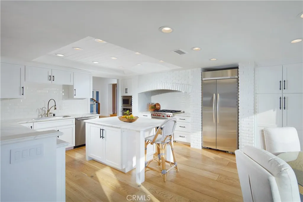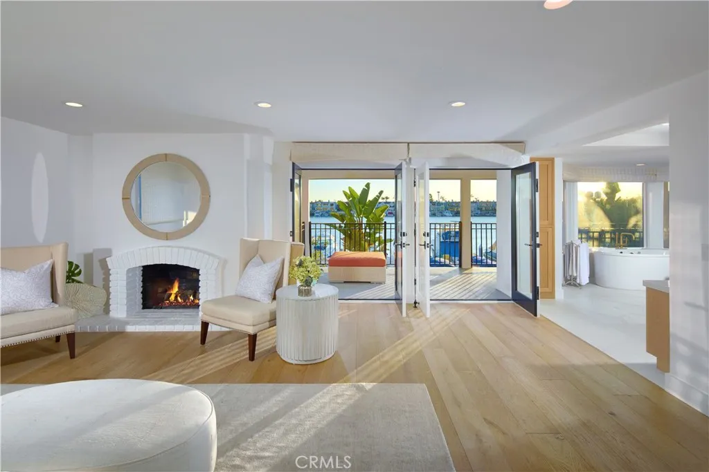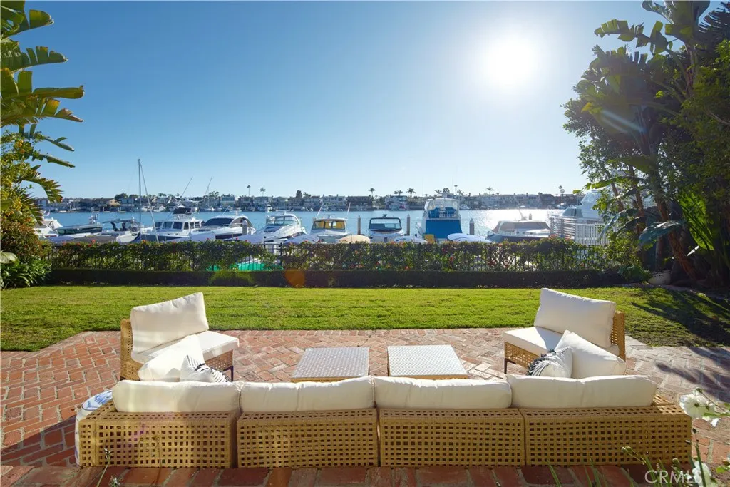 Set within the prestigious, 24-hour guard-gated Bayshores community, this classic traditional bayfront residence embodies the timeless elegance of an East Coastinspired waterfront home. Known for its mature, tree-lined streets, iconic coastal architecture, two private bay beaches, clubhouse, private marina, and exclusive access to the Balboa Bay Club, Bayshores remains one of Newport Beachs most coveted bayfront enclaves. Positioned along one of the longest and most desirable stretches of bayfront in the community, the home enjoys sweeping, ever-changing views of the Newport Channel. From vibrant sunrises to glowing sunsets, the outlook is animated daily by sailboat regattas, morning crew workouts, and the gentle cadence of harbor life. The interior is defined by white oak hardwood floors throughout and a dramatic two-story foyer highlighted by a circular staircase with white oak handrail. Formal and casual living spaces flow seamlessly, including a formal dining room with vaulted, grooved ceilings and a spacious living room centered around a white brick fireplace with French doors opening directly to the bay. The updated kitchen features marble countertops, stainless steel appliances, a breakfast nook, and opens to an adjacent family room with fireplaceideal for everyday living and entertaining. Outdoors, a generous bayside patio with brick hardscape and lawn creates an inviting setting for entertaining or simply enjoying life at the waters edge. The main level also includes a bedroom with adjacent bath appointed with brass fixtures. Upstairs, additional bedrooms are compl