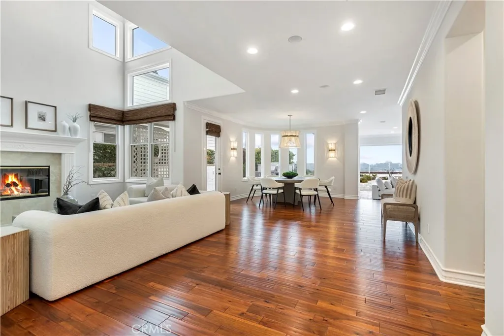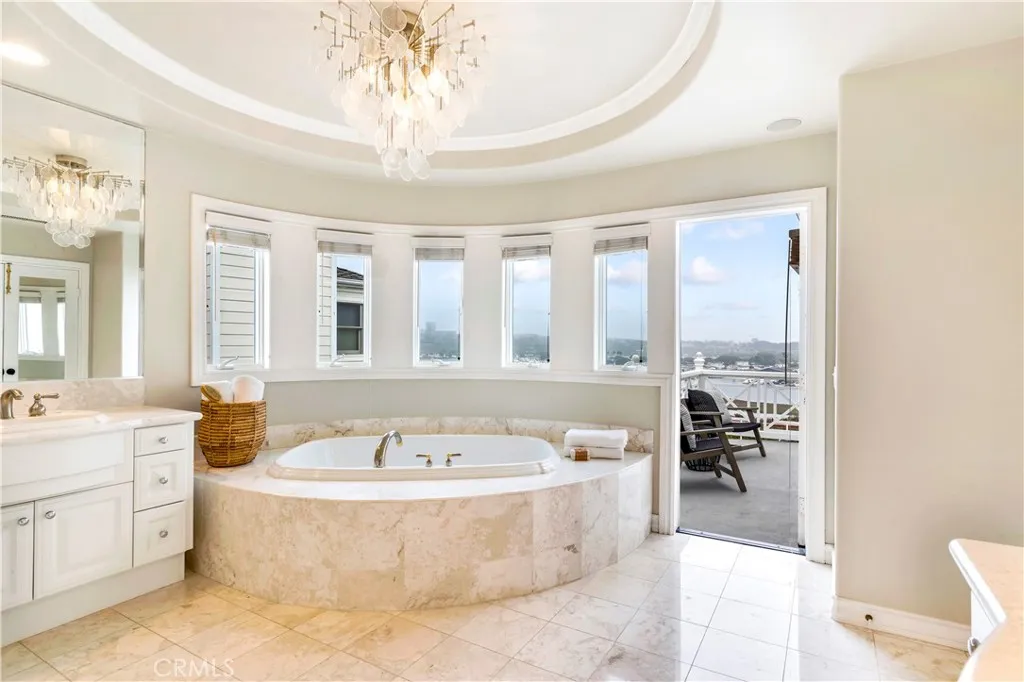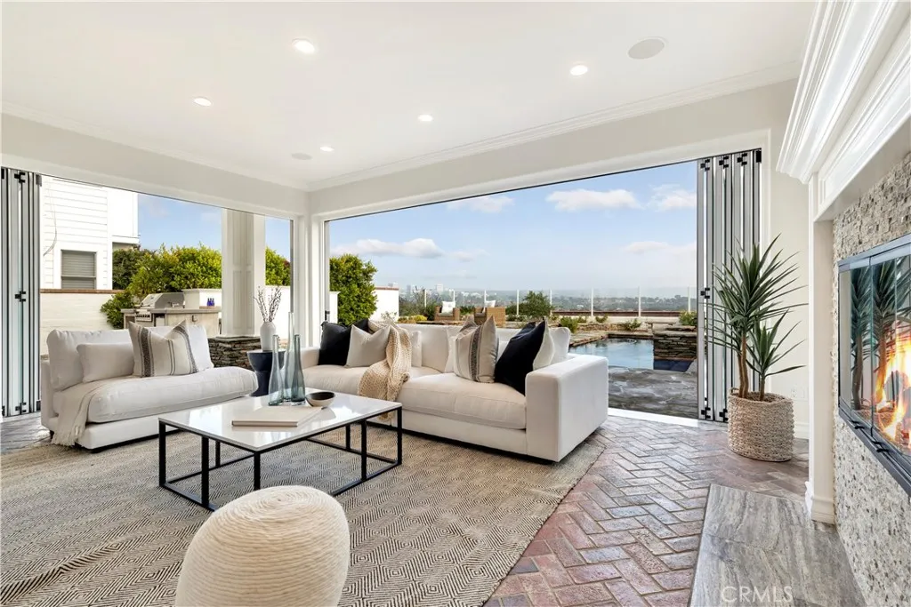 This beautiful CLIFFSIDE home in the Castaways guard-gated neighborhood offers a "front row", spectacular view of Newport bay. The oversized lot and yard is one of the largest on the cliff allowing for a full pool together with a spa and fire pit. LaCantina folding doors create an indoor/outdoor coastal living experience and is as good as it gets. Beautiful kitchen with center- island includes all stainless steel appliances, including SubZero. The spacious primary bedroom also offers include view's with fireplace and balcony. The Castaways community is one of Newport's most coveted neighborhoods, which allows for beautiful walks, hikes, biking and is easily walking to coffee, restaurants, and stores.