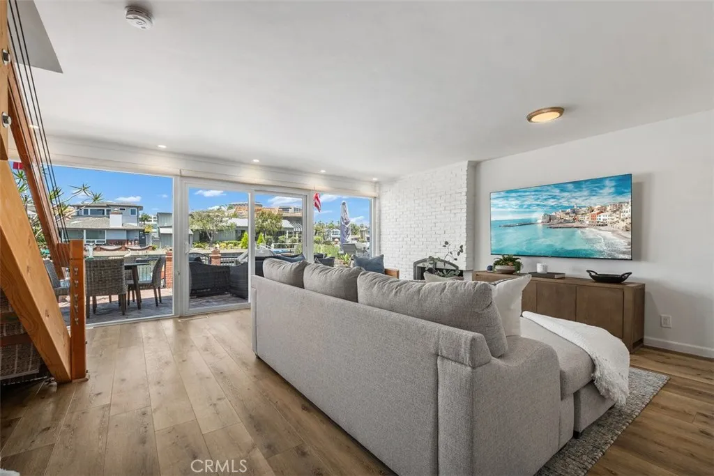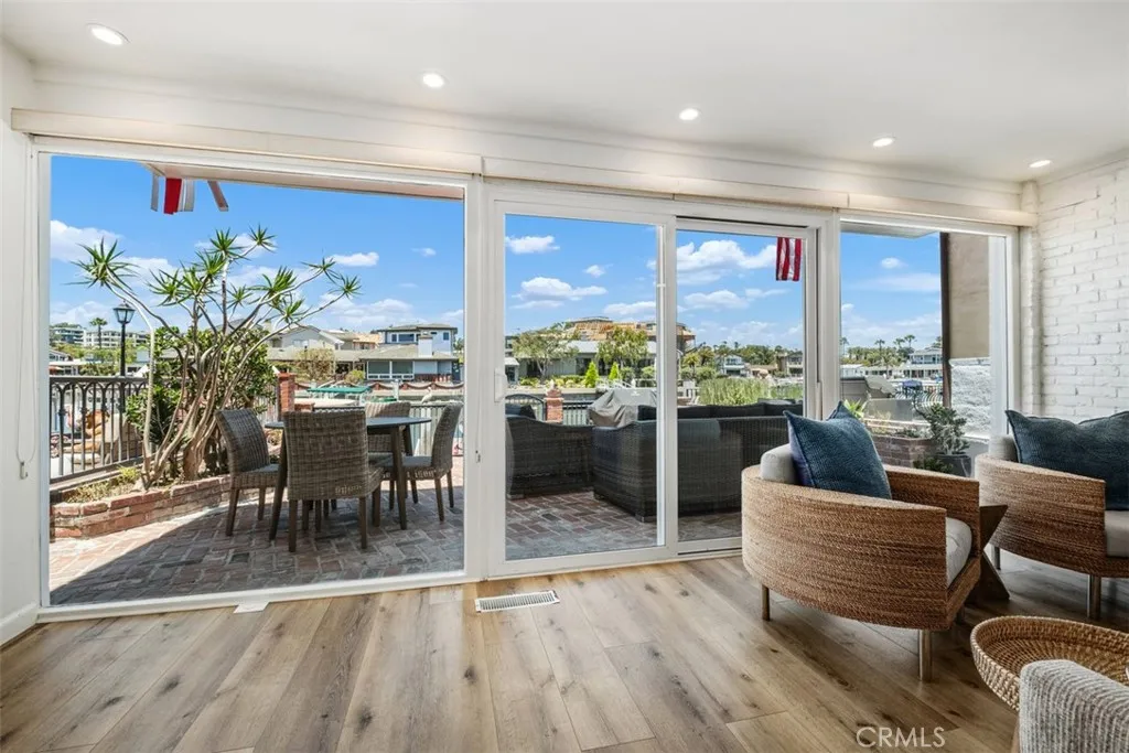 Discover the epitome of coastal elegance with this exquisite bayfront residence on Newport Island, a hidden gem within Newport Beach. This meticulously crafted three-bedroom, three-bathroom home seamlessly blends luxury with the tranquil allure of waterfront living. Ideal for boating enthusiasts, the property features a private dock offering direct access to the bay for sailing or paddleboarding adventures. The expansive open floor plan is enhanced by wall-to-wall windows that frame mesmerizing waterfront vistas, bathing the interior in natural light. The gourmet kitchen boasts stone countertops, premium appliances, and a butcher block peninsula, all overlooking the serene bay waters. The warm and inviting family room, complete with a cozy brick fireplace and panoramic bay views, is perfect for intimate gatherings. An additional first-floor area provides versatile living space, suitable as a children's playroom, home office, or entertainment space. The romantic primary suite serves as a tranquil retreat, featuring a fireplace, vaulted wood-beam ceilings, and breathtaking bay views. Two generously sized secondary bedrooms share access to a spacious covered patio, ideal for enjoying the coastal breeze. Outside, the enchanting bayside patio offers an idyllic setting for sunset soires, barbecues, or morning coffee with loved ones. Nestled adjacent to the Balboa Peninsula, Newport Island is a serene enclave known for its charming streets and close-knit community. Residents enjoy unparalleled access to some of Southern California's finest surfing beaches and a pedestrian-friendly
