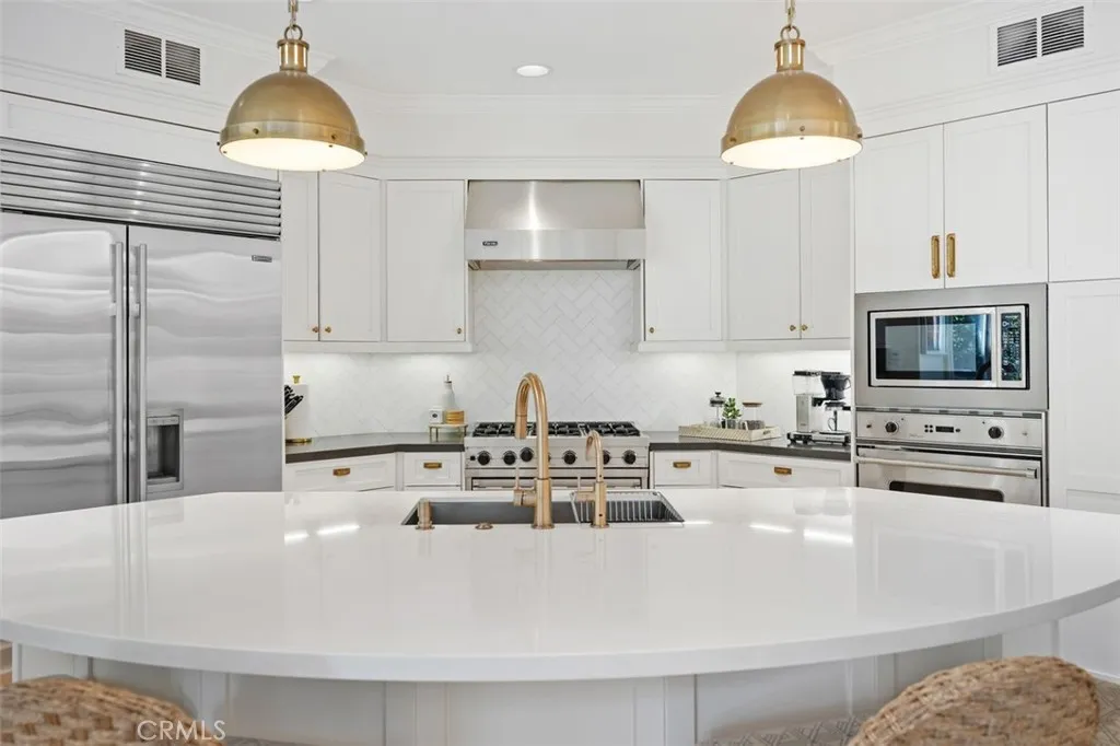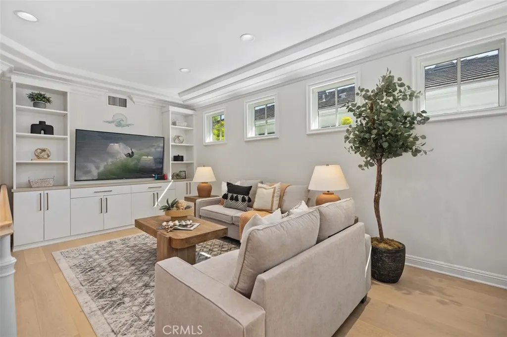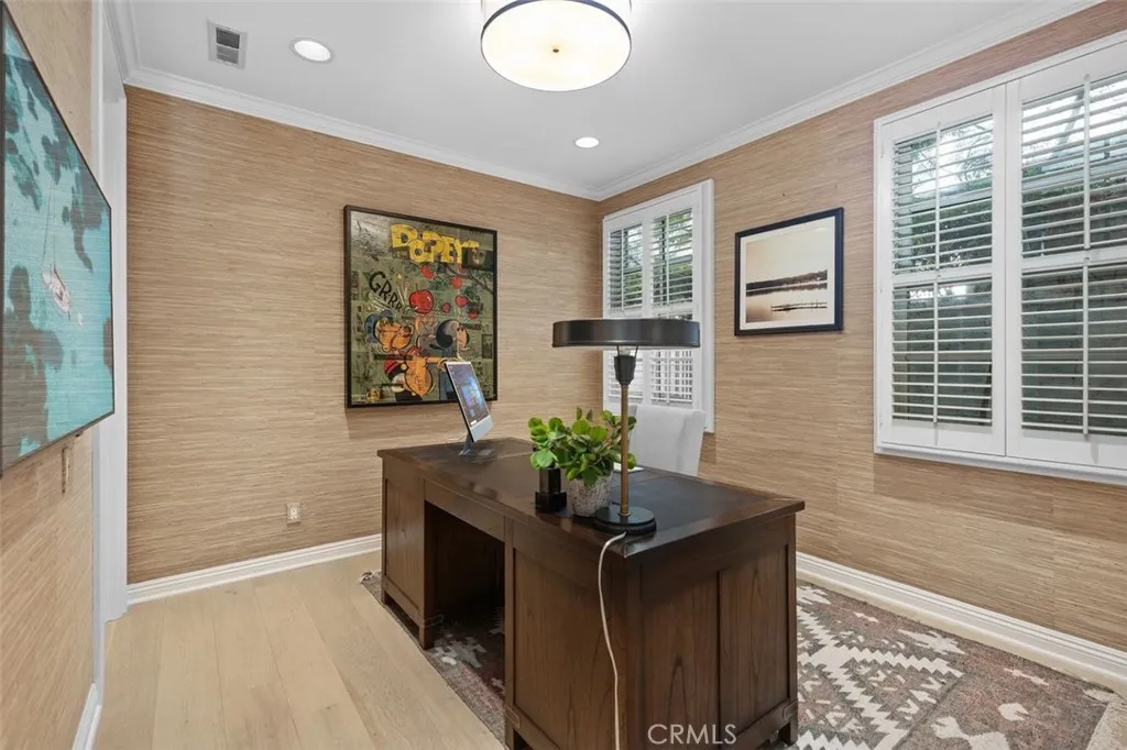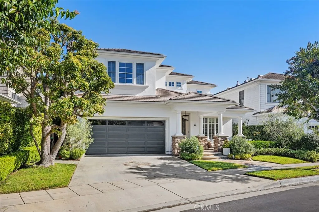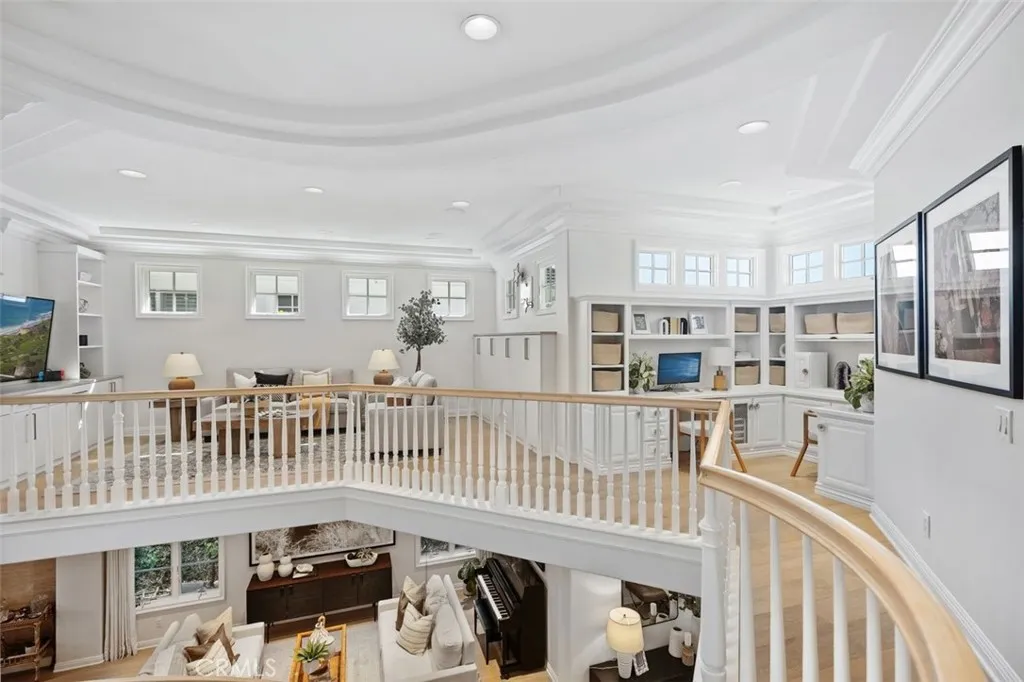 Tucked away on a tranquil cul-de-sac in one of Newport Beachs most desirable 24-hour guard-gated communities, 4 Turtle Bay Drive presents an expanded Carmel 3 plan blending timeless architecture, thoughtful design, and exceptional modern upgrades. Meticulously maintained and beautifully appointed, this 4-bedroom plus guest bed/office residence offers a highly versatile floor plan ideal for both everyday living and elegant entertaining. A welcoming entry features warm wood flooring throughout and neutral stone and quartz surfaces, creating a sophisticated yet inviting aesthetic throughout. The chefs island kitchen is the heart of the home, showcasing premium Viking and Sub-Zero appliances, abundant prep space, generous cabinetry, and a whole-home Culligan water filtration system. Seamlessly open to the family room, this space features a custom entertainment wall unit that encourages effortless gatherings, whether hosting large celebrations or enjoying quiet evenings at home. The freshly painted layout includes two rooms on the main level: one full bedroom, plus a guest bed/office. Upstairs are three en suite bedrooms with custom California Closet systems. The expansive primary suite is a true retreat, featuring a private balcony, oversized dual walk-in closets, and a spa-inspired bath complete with dual vanities, soaking tub, and separate shower. A dedicated attached office provides an ideal work-from-home environment with privacy and convenience. Upstairs, an oversized loft functions beautifully as a media or game room and includes a built-in library shelving, homework or s