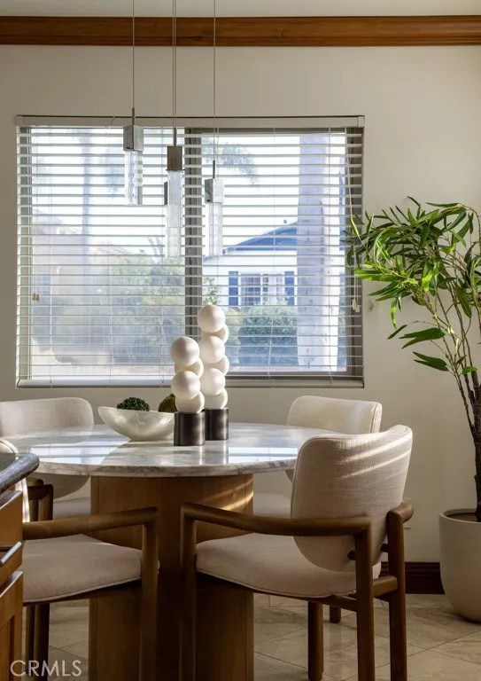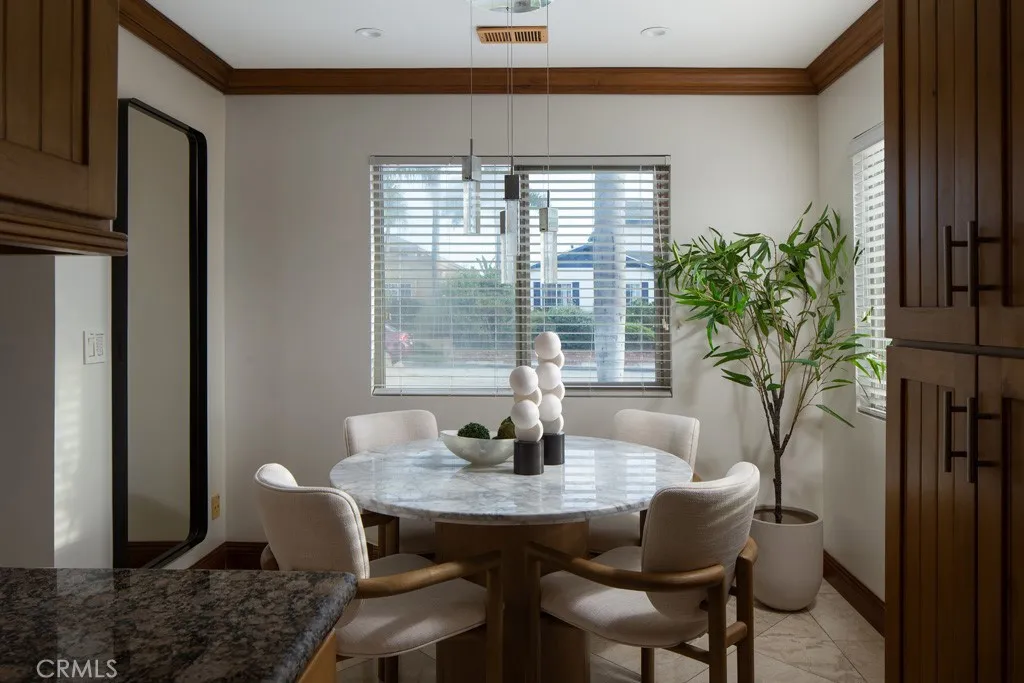Refined coastal living awaits at 401 Holmwood Dr., a single-level residence set on a generous corner lot. An open-concept floor plan seamlessly unites the living and dining areas, anchored by the stone fireplace creating a sense of sophisticated comfort. Thoughtfully designed, the home offers an expansive yet welcoming environment ideal for both intimate gatherings and elegant entertaining. The spacious kitchen and dining nook are filled with natural light thanks to the corner orientation, and are conveniently complemented by a nearby laundry room and powder bath. Two well-appointed bedroomseach with its own bathroomprovide privacy and ease. The primary suite serves as a luxurious retreat, offering direct access to the exceptional rear patio. This private outdoor haven is crafted for relaxation and hosting alike, featuring a covered gazebo, the soothing ambiance of a tranquil fountain, and a built-in fire pit perfect for evenings under the stars. Ideally located just moments from Newports pristine beaches, world-class dining and amenities along 17th Street and Harbor Blvd., and blocks from Hoag Hospital and surrounding medical facilities, this residence is a rare and remarkable find.