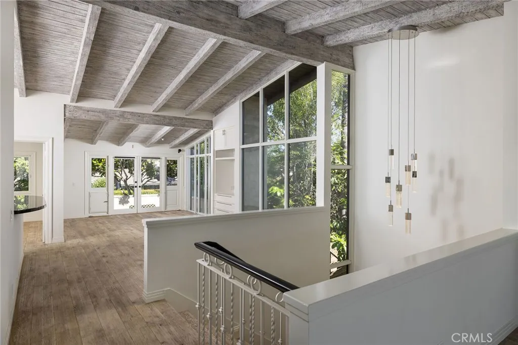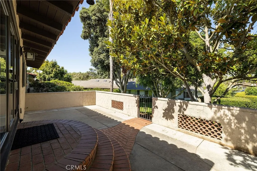 Nestled in the beautiful enclave in the Bluffs community. 409 Vista Grande is a tastefully upgraded G residence that stylistically blends elegance with modern design. Boasting approximately 2,560 square feet, the spacious layout offers 3 bedroomsincluding one on the ground floor combined with a large built out area which could be a workout room, storage, craft room etc.three full bathrooms, and a private home office on the 2nd level, perfectly accommodating a range of living needs. A large light-filled staircase with pendant lighting leads to the expansive upper level, detailed with rustic reclaimed wood beam ceilings, light wide plank hardwood floors, and lots of natural light create an wonderful living space. The large main living areas include a family room with a stone-framed fireplace, dining area and large sliding glass doors that open to a private wraparound balcony with access to beautiful green belt. The gourmet eat-in kitchen is complete with Blackstone countertops, Carrera marble backsplash, stainless steel appliances, custom white cabinetry, and ample bar seating, large dramatic overhead skylights flood the living area with sunshine. A private office with double glass doors provides privacy while still pulling lots of natural lighting in throughout. Upstairs accommodations include a secondary bedroom with newer carpeting and custom wainscoting, and a large owners suite with a spa-inspired bath featuring penny-round cork flooring, dual vanities, and a large walk-in shower with floor-to-ceiling designer tile. Additional highlights include: Nest thermostats, Recess
