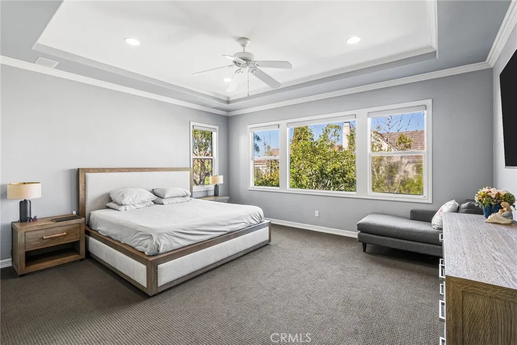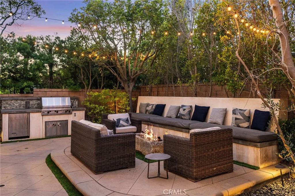 Situated on a quiet cul-de-sac within the guard-gated community of Bonita Canyon, this beautifully appointed Newport Beach residence offers privacy, functionality, and an effortless indoor-outdoor lifestyle. Featuring the highly sought-after and rarely available Plan Five layout, the home showcases a versatile and well-designed floor plan. A main-level bedroom, with direct exterior access, provides flexibility for guests, multigenerational living, or a private office. Upstairs, four additional bedrooms include a spacious primary suite with an en-suite bathroom and walk-in closet, creating a comfortable retreat from the main living areas. Natural light fills the formal living and dining areas, where high ceilings and a fireplace create a warm and inviting atmosphere, with double doors that open seamlessly to the backyard. The open-concept kitchen and family room serve as the heart of the home, enhanced by integrated Sonos surround sound and additional access to the outdoor living spaces, ideal for both everyday living and entertaining. Outdoors, the private spa, built-in barbecue, and built-in fire pit create a peaceful setting designed for relaxed evenings and intimate gatherings. Bonita Canyon residents enjoy 24-hour guard-gated security and access to exclusive community amenities, including a resort-style pool, tennis court, playground, and thoughtfully maintained common areas that foster a sense of connection. Ideally located in the heart of Newport Beach, the home offers convenient access to beaches, scenic hiking and biking trails, premier shopping and dining, John Way