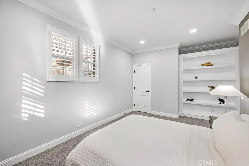 Welcome to a sanctuary of sophisticated coastal elegance nestled in the exclusive enclave of Ziani, Newport Coast. This exquisitely reimagined residence offers an unparalleled lifestyle of luxury and refinement, where every detail has been thoughtfully curated to elevate daily living into an art form. Step into an impeccably styled interior, where a crisp white palettes and rich wood accents create an atmosphere of serene sophistication. Boasting three spacious bedrooms and a refined den/office, this home seamlessly blends comfort with high design. Expansive living spaces are bathed in natural light, flowing effortlessly onto two generous balconies that capture gentle ocean breezes and tranquil vistas - ideal for relaxation or alfresco entertaining. Arched doorways and plantation shutters lend timeless architectural charm, while designer finishes add modern flair, crown molding, wide-plank flooring, and recessed LED lighting. A chefs dream kitchen is airy and expertly appointed with a quartz island, counter seating, a built-in SubZero refrigerator, high-end stainless steel appliances, and a striking designer backsplash. The adjacent dining room and inviting living room with a glowing fireplace are perfect for sophisticated entertaining or intimate gatherings. Additional highlights include a second-level laundry room and a finished two-car garage with abundant storage offering added convenience. Residents of Ziani enjoy access to an array of resort-style amenities, including a private pool and spa, clubhouse and putting greens. Ideally located moments from world-class golf c
