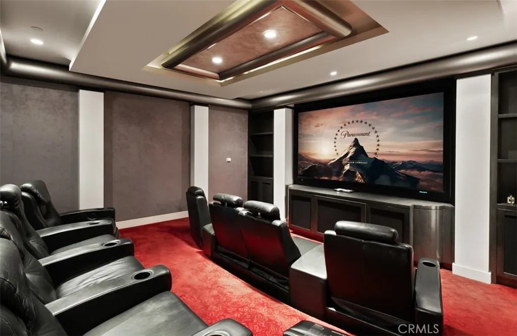 Situated within the prestigious guard-gated community of Pelican Crest, this remarkable custom estate offers approximately 10,310 square feet of refined modern European living, seamlessly blending timeless architecture with contemporary sophistication. Beyond the grand double glass-and-iron entry doors, a dramatic two-story foyer with a sweeping floating staircase and French limestone flooring sets the tone for the homes exceptional transitional design. Light-filled formal and casual spaces flow effortlessly, including a formal dining room with access to the grounds and a gourmet chefs kitchen appointed with Viking and Miele appliances, custom cabinetry, and elegant stone surfaces. The great room, anchored by a striking onyx fireplace and sophisticated wet bar, opens through three sets of French doors to the resort-like backyard, creating a natural extension of indoor and outdoor living. The lower level is dedicated to leisure and wellness, offering a steam room, sauna, gym, temperature-controlled wine cellar, and a state-of-the-art home theater with an adjoining lounge/game area. Upstairs, the luxurious primary suite features a spacious sitting area and spa-inspired bath with dual showers, under-lit onyx countertops, and a deep soaking tub. Additional bedroom suites each include their own beautifully finished bathrooms. Outdoors, the residences modern European influences are expressed through symmetrical design and the elegant use of thoughtful materials, creating a private resort setting complemented by breathtaking canyon and peekaboo ocean views. The grounds showcase an