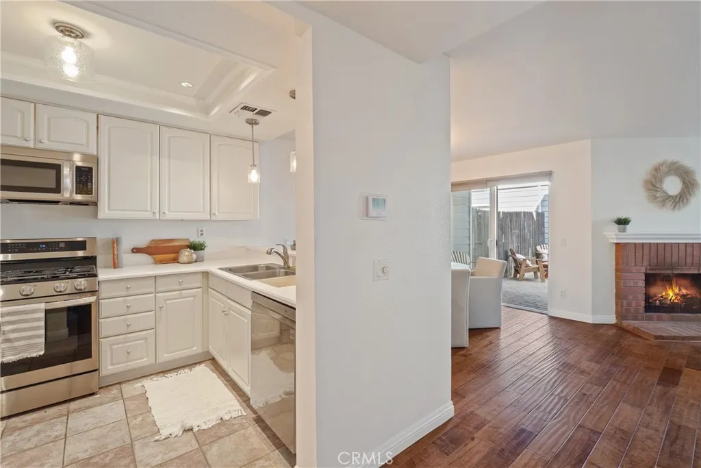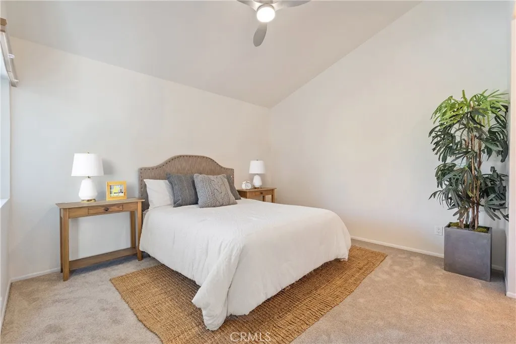 Welcome to this beautiful 2-bedroom, 2-bath townhome with a private two-car garage, ideally located in one of the quietest corners of a secure, gated, and well-kept community. Featuring a large private backyard, this property is a rare find! Step inside to a formal entry with soaring ceilings and high windows that flood the home with natural light. The open-concept layout features a spacious living room with a charming brick fireplace, a dining area, and a large kitchen with a walk-in pantry and breakfast bar, perfect for both entertaining and everyday living. Wood flooring flows through the downstairs, stairs, and upstairs hallway, while brand new carpet in the bedrooms adds comfort. Dual-pane windows enhance energy efficiency and quiet comfort. Upstairs, vaulted ceilings enhance two generously sized bedrooms. The primary suite is a true retreat, complete with a sitting area, two closets (including a walk-in), a generous en-suite bath, and a private balcony. Convenient hallway cabinets provide additional storage. Outside, your private backyard offers the perfect space for outdoor dining, gardening, or relaxing and connects directly to the attached 2-car garage with secure access, providing extra storage and convenience. Community amenities include a pool, spa, optional RV parking, and gated entry. HOA dues cover water, sewer, trash, earthquake insurance, access to all amenities, and even basic Spectrum cable and internet. Centrally located near the 405 freeway, California State University, Northridge, local parks, schools, shopping, and diningthis townhome combines comfort