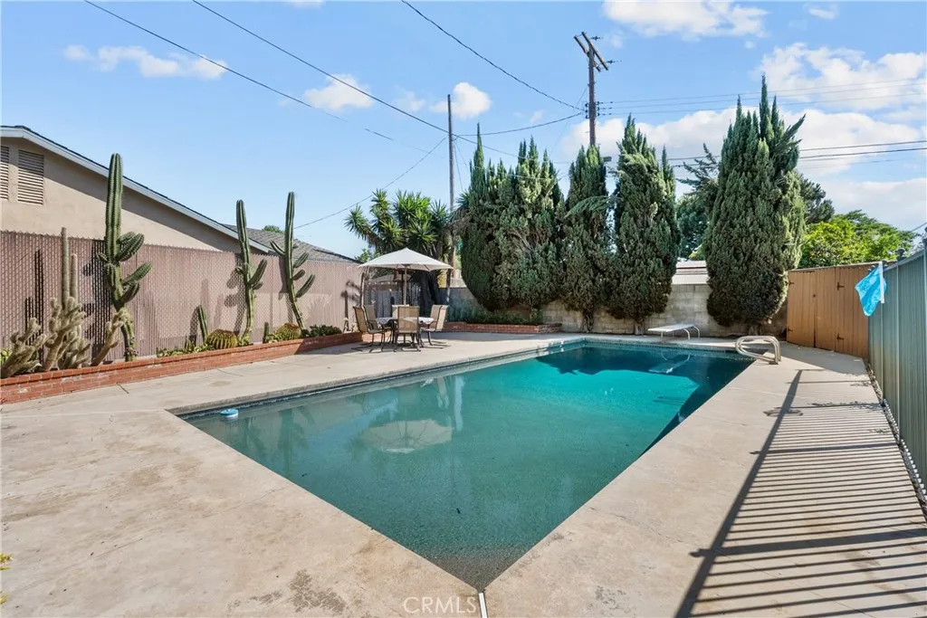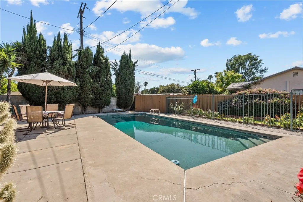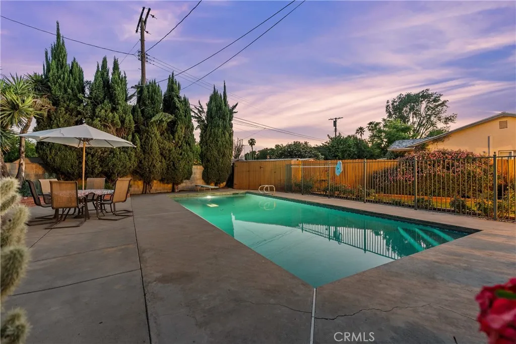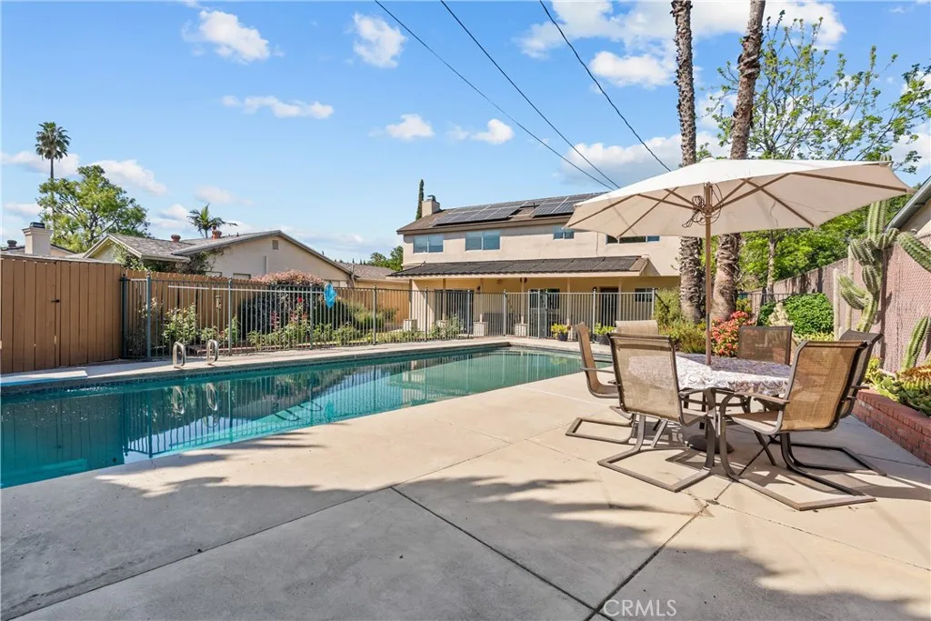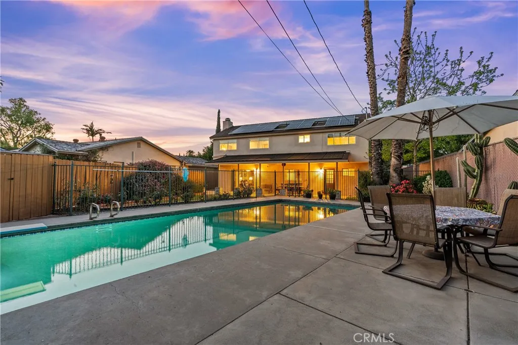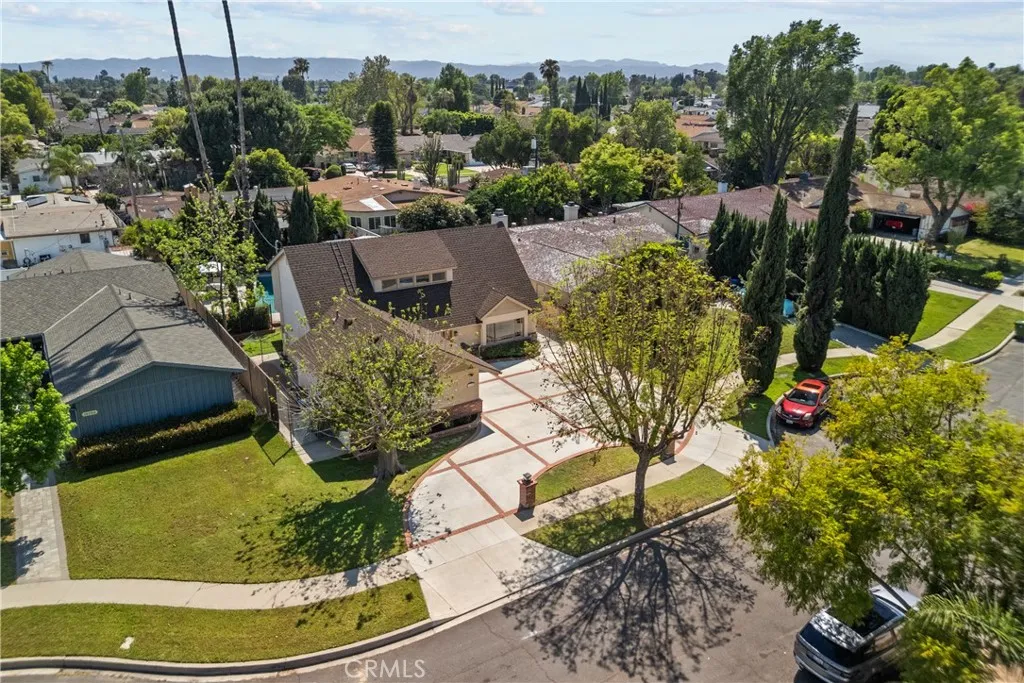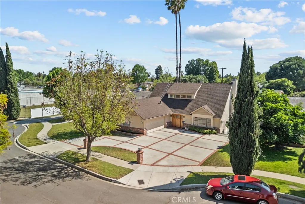Welcome to this charming Cape Cod-style pool home, ideally located on a friendly cul-de-sac in the highly sought-after North Hills West neighborhood. Beautifully maintained, this 4-bedroom, 2-bathroom residence offers approximately 1,788 square feet of inviting living space. A welcoming foyer opens to a bright, airy interior filled with timeless mid-century character. The remodeled kitchen combines style and functionality, featuring shaker cabinetry with soft-close drawers, pull-out pantry shelving, and sleek Corian countertops. A full suite of appliances includes a gas range and oven, dishwasher, microwave with vent hood, and refrigerator. The adjacent dining area is perfect for both everyday meals and entertaining, highlighted by a charming chandelier and sliding glass doors that create seamless indoor-outdoor flow to the backyard. The spacious living room offers a warm, inviting atmosphere with a cozy fireplace and a large picture window overlooking the front yard. The main level includes a versatile bedroomideal for guests, a home office, or denalongside a remodeled bathroom with a tiled shower and updated vanity. Upstairs, the generously sized primary suite features a large closet and peaceful backyard views. The main bathroom offers a dual-sink vanity, soaking tub, and separate tiled walk-in shower. Two additional upstairs bedrooms provide comfort and ample storage. Step outside to your private backyard retreat, designed for relaxation and entertaining. Enjoy a sparkling swimming pool, expansive covered flagstone patio, grassy lawn, rose garden, mature cactus garden,