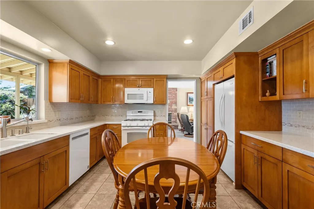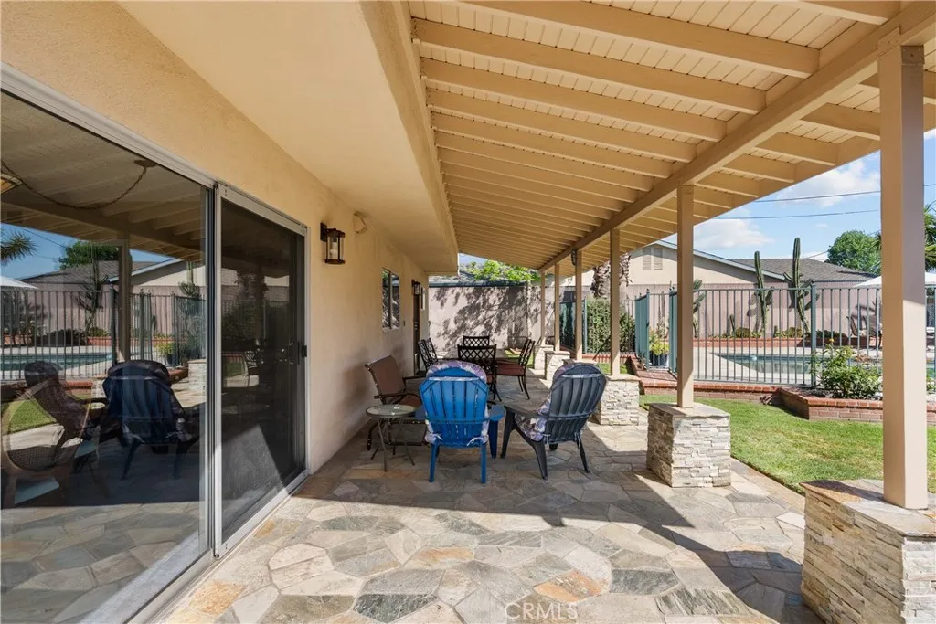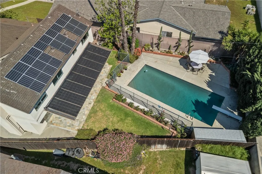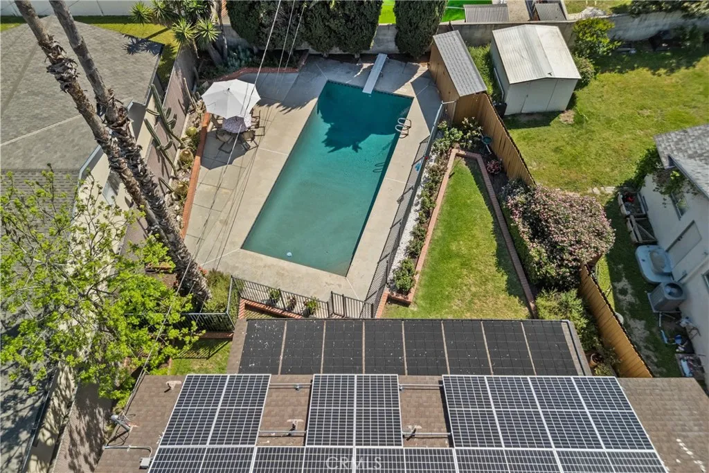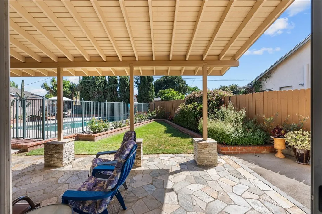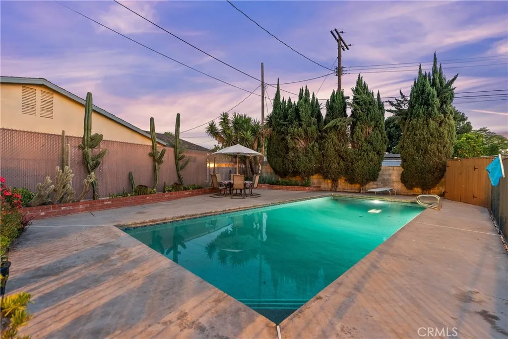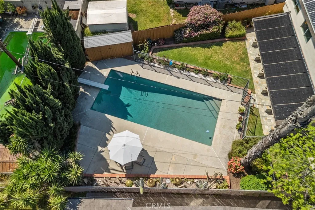 Welcome to this charming Cape Cod-style pool home, ideally located on a friendly cul-de-sac in the highly sought-after North Hills West neighborhood. Beautifully maintained, this 4-bedroom, 2-bathroom residence offers approximately 1,788 square feet of inviting living space. A welcoming foyer opens to a bright, airy interior filled with timeless mid-century character. The remodeled kitchen combines style and functionality, featuring shaker cabinetry with soft-close drawers, pull-out pantry shelving, and sleek Corian countertops. A full suite of appliances includes a gas range and oven, dishwasher, microwave with vent hood, and refrigerator. The adjacent dining area is perfect for both everyday meals and entertaining, highlighted by a charming chandelier and sliding glass doors that create seamless indoor-outdoor flow to the backyard. The spacious living room offers a warm, inviting atmosphere with a cozy fireplace and a large picture window overlooking the front yard. The main level includes a versatile bedroomideal for guests, a home office, or denalongside a remodeled bathroom with a tiled shower and updated vanity. Upstairs, the generously sized primary suite features a large closet and peaceful backyard views. The main bathroom offers a dual-sink vanity, soaking tub, and separate tiled walk-in shower. Two additional upstairs bedrooms provide comfort and ample storage. Step outside to your private backyard retreat, designed for relaxation and entertaining. Enjoy a sparkling swimming pool, expansive covered flagstone patio, grassy lawn, rose garden, mature cactus garden,