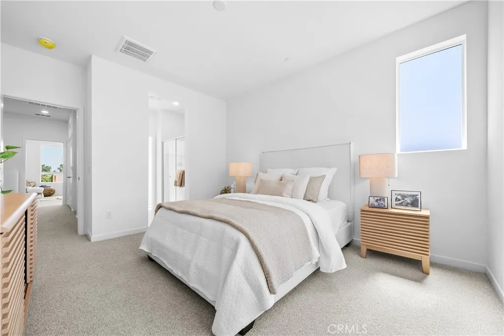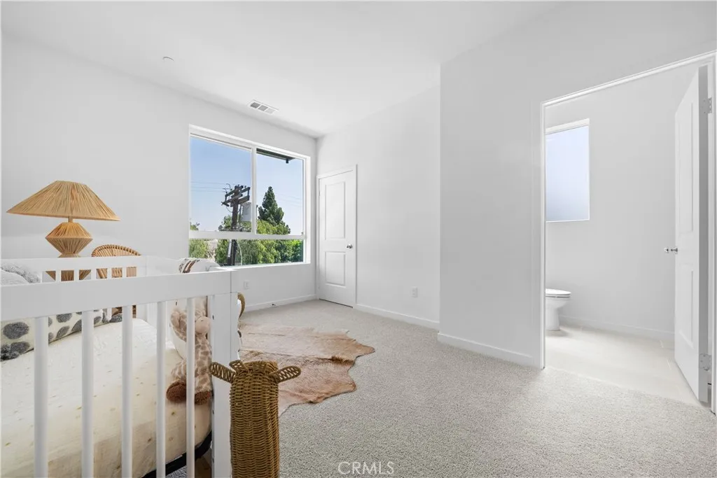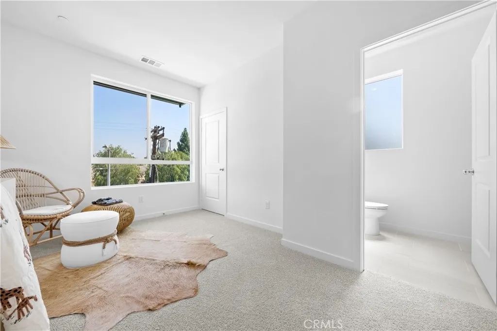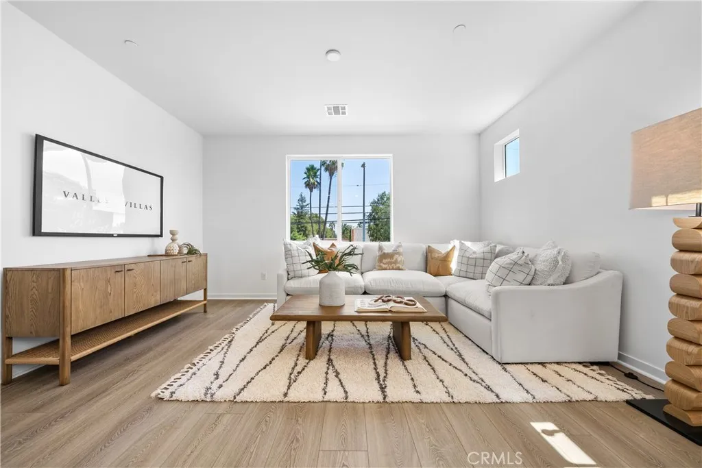 Welcome to Valley Villas, where modern living meets convenience in a private, gated community. This charming corner unit is perfect for those seeking a low-maintenance, lock-and-go lifestyle, with quick move-in options available. As you step into the home, you'll find a spacious foyer and a 2-car garage on the ground level. The first floor includes a bedroom with a full bathroom, ideal for guests or a private office. The second floor greets you with an open, airy feel, thanks to 9-foot ceilings and plenty of natural light. The kitchen, complete with sliding doors leading to a balcony, is perfect for enjoying city views, fresh breezes, and entertaining. A powder room on this level adds convenience for guests. On the top floor, the primary suite offers a private retreat with its own bathroom, while the secondary bedroom also features an en-suite bathroom, with laundry conveniently located nearby. With a prime location just minutes from the 405 freeway, you'll have easy access to work, play, and everything in between. Experience the comfort of this well-designed home, set in a vibrant community. **Note: Pictures are artistic renderings.**