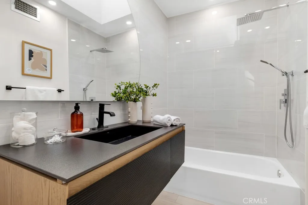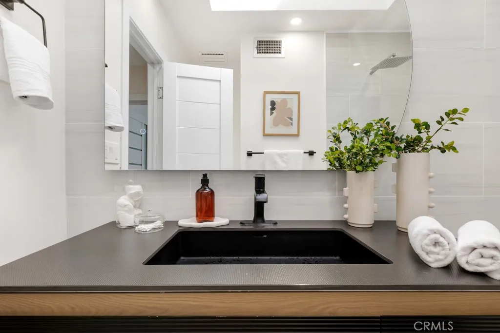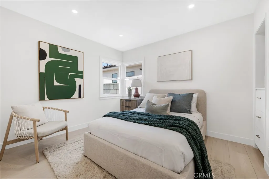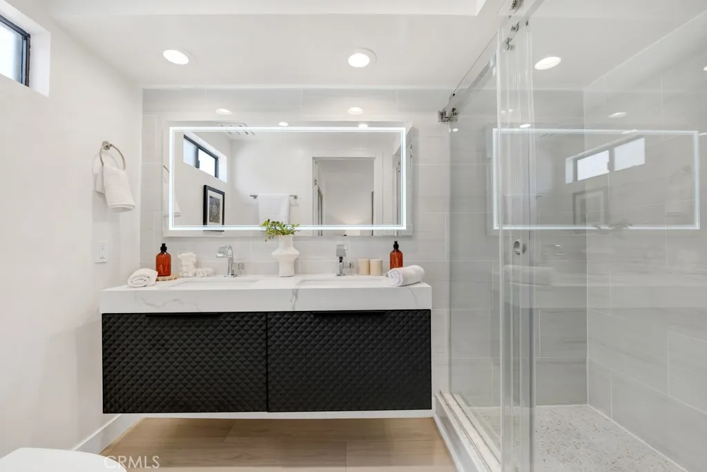 Introducing this beautifully upgraded single-family home in North Hollywood! Spanning 1,650 square feet, this charming residence features 3 bedrooms and 2 bathrooms. Upon entering, you'll be captivated by the exquisite details, including stylish light fixtures, textured walls, and stunning marble countertops. The entire home boasts elegant engineered wood flooring and recessed lighting, creating a warm, inviting ambiance. Step into the cozy living room, complete with a sophisticated fireplace that adds character to the space. The first bathroom, conveniently located in the hallway, showcases a modern design with a floating vanity and a skylight that fills the room with natural light. The primary bedroom includes two spacious closets and an ensuite bathroom for added convenience. The gourmet kitchen is a chef's dream, equipped with a 36-inch professional-grade stove, luxurious marble countertops, a large island, and custom cabinetry. This area flows effortlessly into the open living and dining spaces, making it perfect for entertaining guests. The third bedroom, situated near the dining room, offers flexibility as a potential home office. The thoughtfully designed landscaping and hardscaping enhance the propertys appeal, all framed by a secure perimeter gate that ensures privacy and safety. Additionally, a detached garage at the back presents an exciting opportunity for a fully permitted ADU conversion (approximately 566 sq. ft.), with paid plans available for a 1-bedroom, 1-bathroom unit. This property is move-in ready and ideally located close to the vibrant NoHo Arts Dist