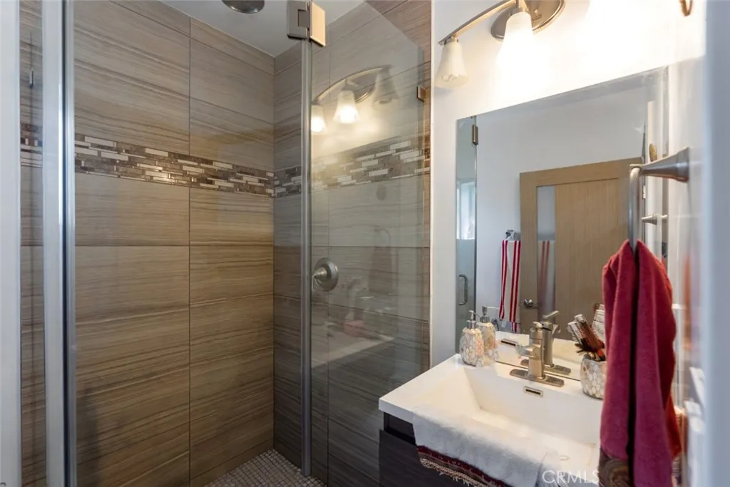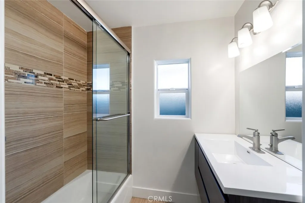 A modern single-family home with a detached ADU, offering flexible living, income potential, and ample parking in the heart of North Hollywood. Offering approximately 2,658 square feet of total living space, this single-family residence with a detached ADU sits on an approximately 6,712-square-foot lot and delivers flexibility, space, and functionality in a well-located North Hollywood setting. The front home is thoughtfully designed and recently updated, featuring three bedrooms and three full bathrooms. The living areas showcase wide-plank wood flooring, recessed lighting, and a striking stone-clad fireplace that anchors the main living space. An open, modern kitchen is finished with sleek white cabinetry, contemporary tile backsplash, stainless steel appliances, and generous counter space, flowing seamlessly into the dining and living areas. Large sliding glass doors connect the interior to a private covered patio and yard, creating an easy indoor-outdoor lifestyle. Bathrooms are clean and modern, with glass-enclosed showers, updated vanities, and neutral finishes throughout. Positioned separately, the two-bedroom, two-bathroom ADU offers its own private entrance and strong versatility. It can function as a rental unit to help offset monthly housing costs, a private guest residence, or a work-from-home or studio space, depending on the occupants needs and applicable regulations. The ADU is currently occupied but can be delivered vacant. A rare opportunity to secure a single-family home with a separate ADU, offering space, privacy, parking, and multiple use options in one
