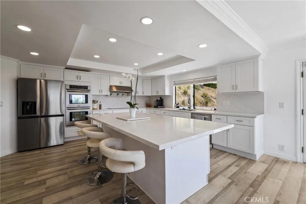 PANORAMIC VIEWS, LAND, and LOCATION. These are three characteristics which make this a unique and special offering. There are two properties being offered as a package deal; 12235 Circula Panorama Pl and the adjoining vacant lot at 12233 Circula Panorama Pl. Located in the highly desirable North Tustin community of Panorama Heights, this 4 Bedroom 3.5 Bathroom home includes a combined lot size of 32,310 square feet. The views are directly south facing, and on a clear day you can see all the way to Catalina Island! Nearly every room of the house offers stunning views. Move into the home as is, add onto the home to create your dream estate, build a second house on the vacant parcel, let your imagination run wild. The main level features a family room with soaring ceilings, a fully renovated kitchen with quartz counters, a double oven, and an oversized island. Upstairs there is the primary bedroom with en suite bathroom, 2 secondary bedrooms, and an additional full bathroom. On the ground level, there is a bedroom, full bathroom, and separate living area. There is a private access from the ground level, which could be a perfect set up for a mother in law suite or a junior ADU. There is a 3 car garage, a long driveway, and designated private parking on the street. One of the highlights of this community is its perfect location in Orange County; a quick drive to John Wayne Airport, Newport Beach, Peters Canyon Regional Park, and just 45 minutes to downtown LA. Come and see one of the most unique offerings on the market!