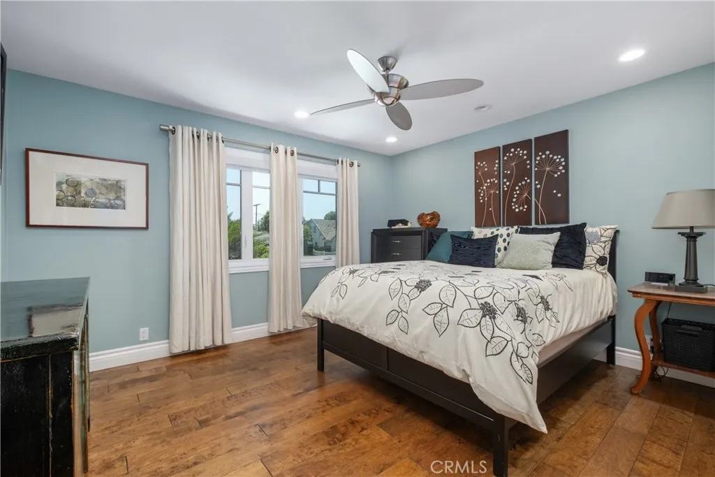 Price Reduction!!!! This sprawling 4,993-square-foot single-story ranch home is located in the highly desirable Red Hill Ridge neighborhood, situated on a nearly half-acre flat rectangular lot. The home features five bedrooms and five bathrooms, including a separate 1,350-square-footADU, complete with a full kitchen, bathroom, living room, large closet, and an office, making it a wonderful potential rental option. The primary bathroom has been beautifully remodeled and includes a double sink vanity, a new walk-in shower, a soaking tub, two large walk-in closets and additional storage. There are also three more bedrooms. The spacious living room and family room share a cozy double-sided fireplace. The family room also features a walk-up wet bar complete with 4-5 barstools and ample storage. Recent upgrades include three air conditioning unitstwo of which are new, a 4-ton and 5-ton ACtwo water heaters, and an EV charger in the garage. Additionally, the study/library/office includes a Murphy bed and provides access to the rear yard and pool. The home boasts newer wood and tile flooring throughout. Outside, you'll find a large private pool with an attached spa, fully fenced in for security and safety. The yard includes a spacious lawn area, two storage sheds on the side yard, and ample space for an RV. The property also features a three-car garage and a circular driveway that can accommodate multiple vehicles for guests. Solar Panel lease to be paid off by seller upon COE.
