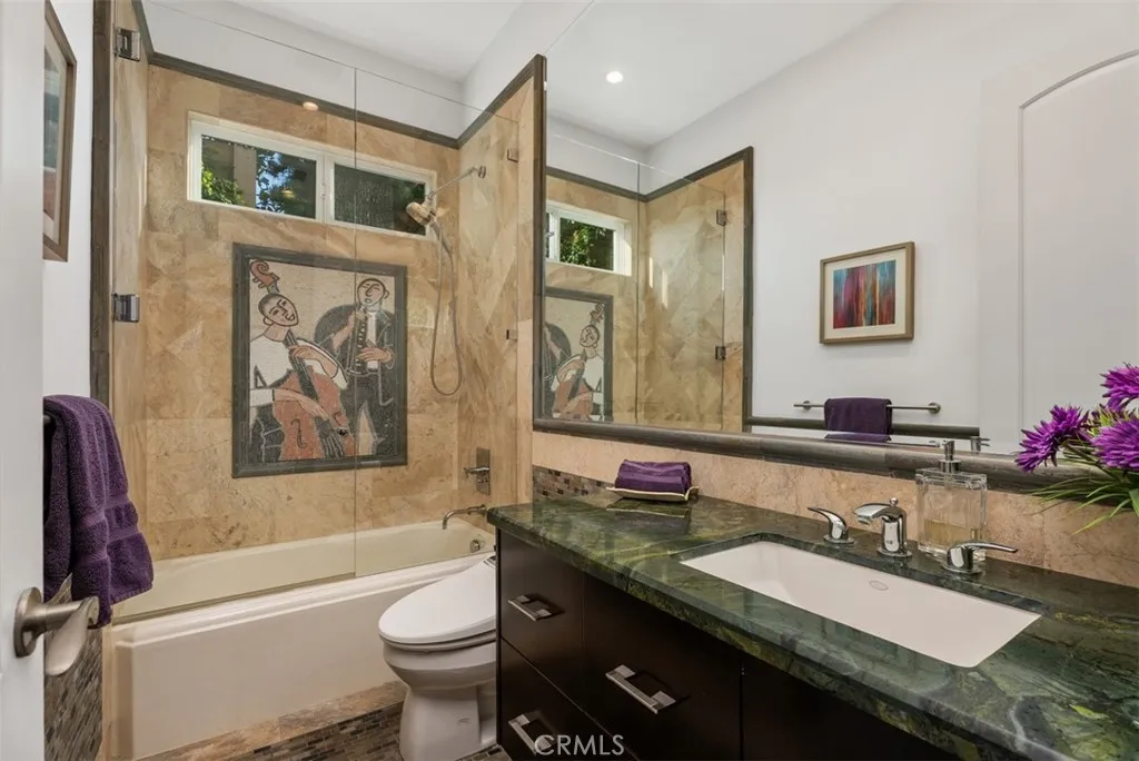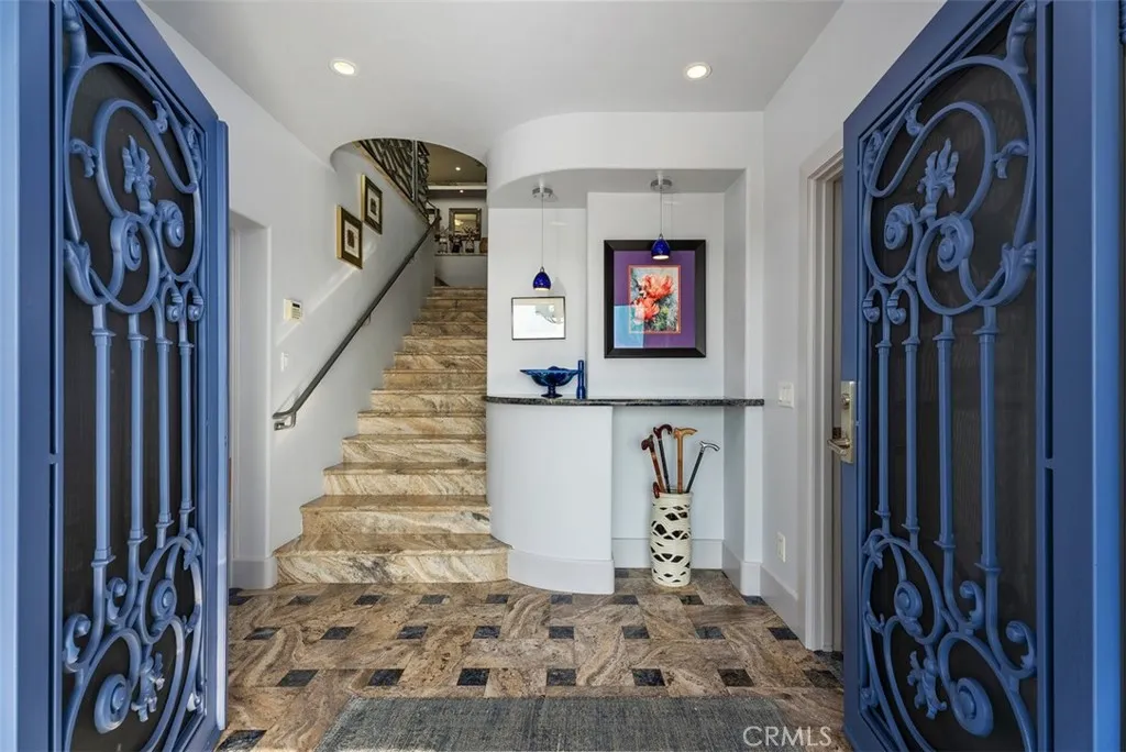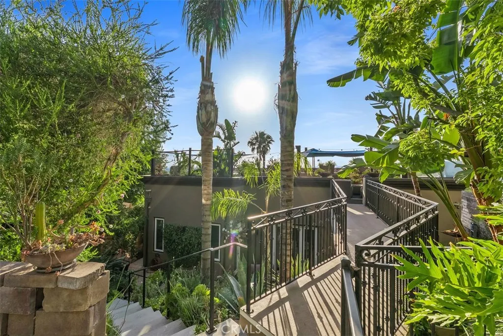 WOW. THIS IS A STEAL!!! Imagine waking up to unparalleled vistas that stretch from Catalina Island to the vibrant skyline of downtown LA to the majestic peaks of Mt Wilson. Welcome to your dream home a sanctuary where elegance, comfort, and privacy unite in perfect harmony. Let the magic of fireworks from Disneyland light up your nights, creating memories that last a lifetime. This custom home was built to maximize the views from almost every room and outdoor space. Sit down views from the expansive covered front porch, a view balcony from the main living level, and a huge roof deck complete with fireplace, island, and barbeque area. The inground spa was designed to provide views through the windows out to the sparkling evening lights. This home checks all your boxes, freshly painted, new garage door, Level 2 charger, driveway that can accommodate at least 6 cars, lush low maintenance landscaping, and privacy. Updated kitchen with a 6 triangular island with raised counter seating. Built-in Thermador refrigerator, 6 burner stove, newer Bosch dishwasher, microwave drawer and beverage frig. The massive great room (40x29) is the hub of the home where living, dining, and meal prep all open to one another. French doors take you to the rear yard that is thoughtfully tiered. A bridge connects the rear yard to the roof deck, which enables easy access to this special entertaining space. The specialty stone and tile work make this a very unique property, from the Bahia Blue granite thresholds upon entry to the slab Travertine stairs. The primary bathroom was recently renovated with p