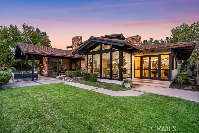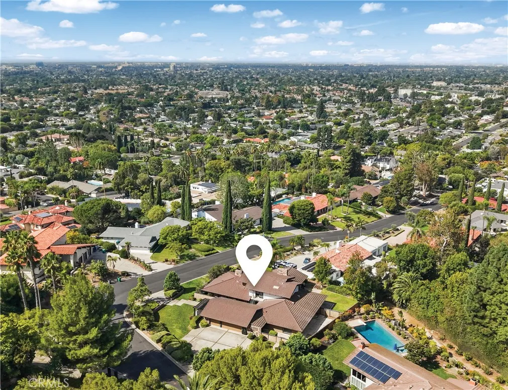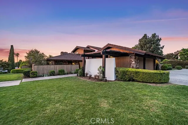 Welcome to 1411 Faren Drive, a custom Mid-Century Modern retreat in the hills of Lemon Heights where timeless design meets modern comfort. Walls of glass frame breathtaking city light views, filling 4,221 sq. ft. of living space with natural light and effortless indoor-outdoor flow. Recently refreshed with crisp new interior paint and sleek LED recessed lighting, the home feels both warm and contemporary for todays lifestyle. The flexible floor plan lives like a single story with 4 bedrooms and an executive office on the main level, while the entire upstairs is dedicated to a private primary suite with custom closets, spa-inspired baths, and its own living area. An oversized living room with soaring vaulted ceilings provides the perfect backdrop for grand entertaining, while the family room with entertainers bar invites relaxed gatherings with friends and loved ones. A formal dining room and 4 fireplaces further enhance the inviting ambiance. The chefs kitchen is equipped with wood cabinetry, granite counters, stainless appliances, eating bar, and an inviting informal dining area. A convenient laundry and storage room is nestled behind the kitchen. Nearly every room opens to the outdoors, where multiple patios and a low-maintenance grass backyard with drought-tolerant gardens create the ideal setting for peaceful mornings, vibrant sunsets, and sparkling city-light views. All of this is within the award-winning Tustin school boundaries Arroyo Elementary, Hewes Middle, and Foothill High in a highly sought-after area where homes rarely become available. This home is a sanctu