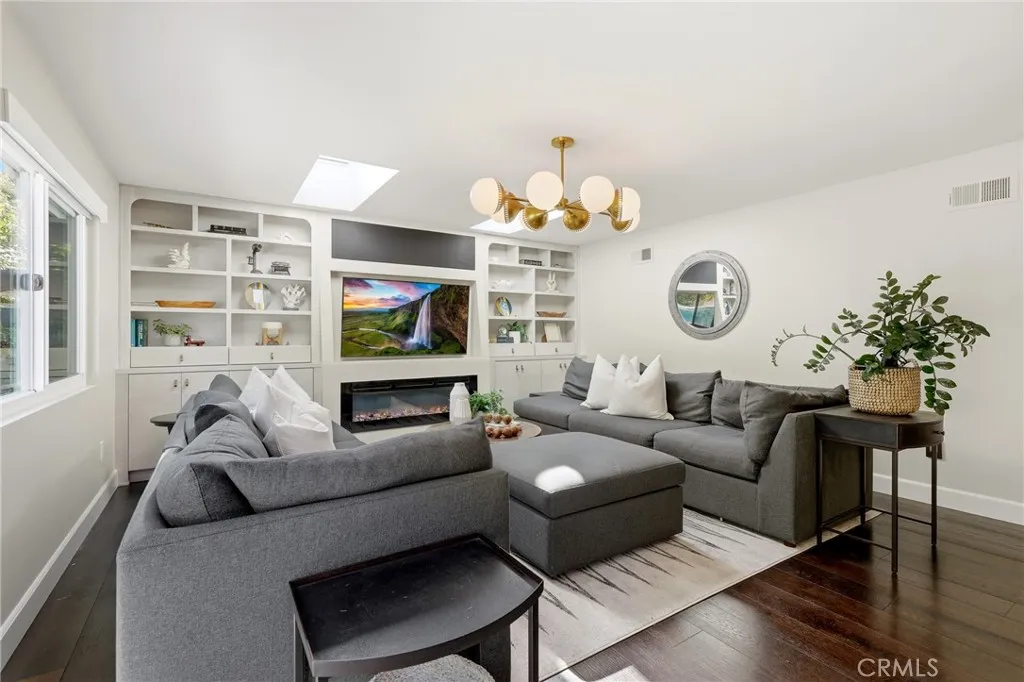 Ideally situated on a rare cul-de-sac in the coveted Cowan Heights neighborhood of North Tustin, this south-facing, beautifully remodeled single-family home sits on an expansive half-acre lot, offering exceptional privacy, space, and functionality. Framed by mature trees and lush landscaping, the backyard is a true retreat, featuring a sparkling PebbleTec pool, outdoor fireplace and fire pit, and generous space for entertaining and outdoor gatherings. The residence has been meticulously updated by the current owners and showcases gorgeous hardwood flooring, updated windows and patio doors, and designer lighting enhanced by Legrand and Lutron lighting controls. Significant infrastructure upgrades include brand-new copper plumbing and electrical updates completed approximately 10 years ago, along with a home-run wiring configuration with CAT6 and copper coax throughout. A well-conceived and highly functional floor plan features formal living and dining rooms, complemented by an open-concept kitchen that seamlessly connects to a breakfast nook and separate family room. The formal living room makes a striking impression with beamed ceilings and a welcoming fireplace, flowing naturally into the formal dining room appointed with custom built-in cabinetry, a wine cooler, wainscoting, and crown molding. The remodeled kitchen features sleek cabinetry with exceptional storage, multiple access points to the backyard, and opens to the breakfast nook and family room with custom built-insideal for both everyday living and effortless entertaining. The primary bedroom suite located on the