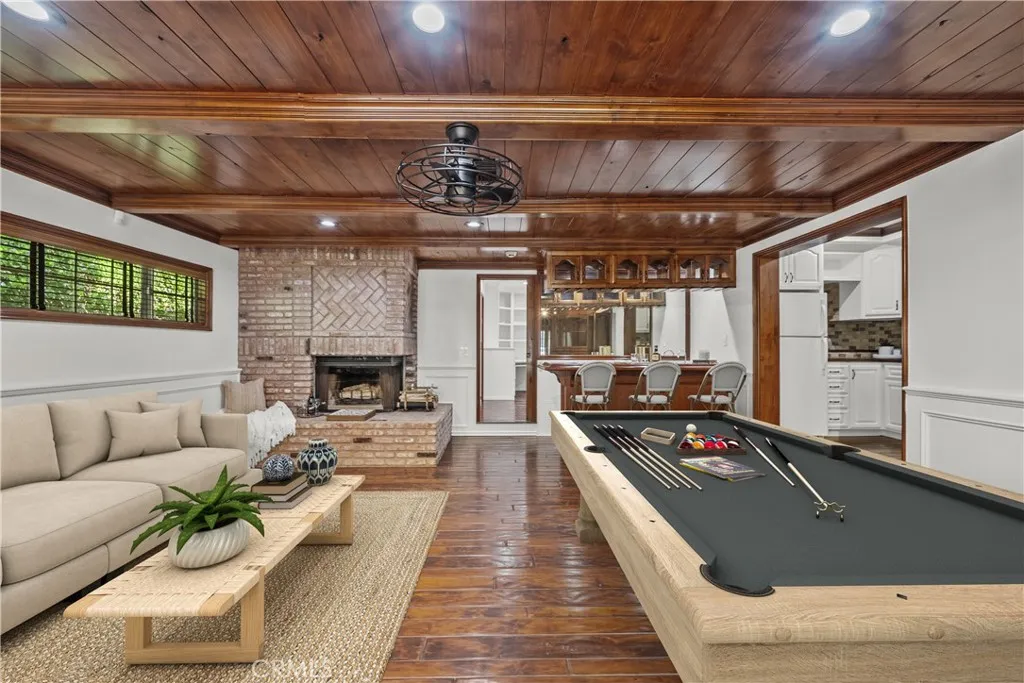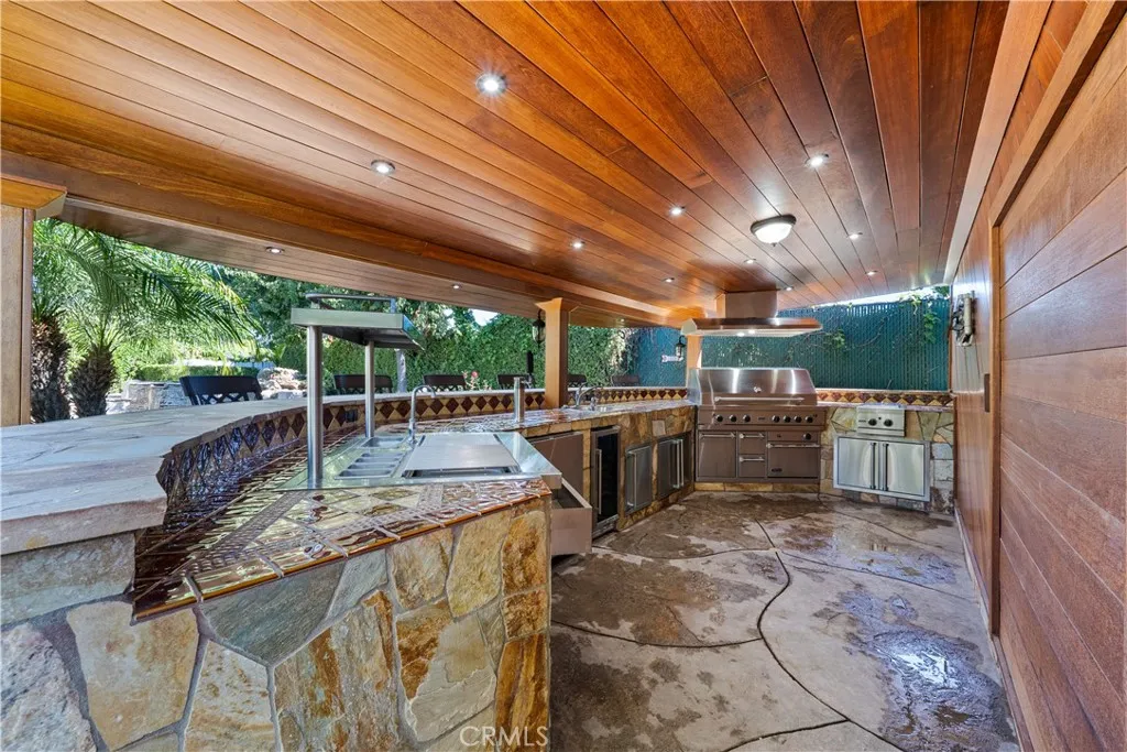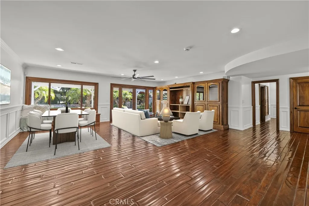 Suburban-Style Living in the Heart of the City! Welcome to this ranch-style stunner, offering the perfect blend of comfort, luxury, and functionality. This one-of-a-kind property features 3 bedrooms + 2 bathrooms + a retreat/office and indoor laundry, PLUS an attached 1 bed/1 bath ADU with its own private fireplace, kitchen, and laundry ideal for rental income (potential income $2800/mo), guests, or private workspace. The oversized lot features a circular stamped-concrete driveway, detached 2-car garage, double RV/boat parking, and private backyard oasis that truly defines Entertainers Paradise. The main home includes a custom oak cocktail bar, built-in family room cabinetry, wainscoting, solid alder interior doors, and custom hardwood floors. Recent and new updates include carpet, recessed LED lights, ceiling fans, soft-close cabinets and drawers, Nordic tankless water heater, paint (inside and out), carriage lights, tile flooring in the ADU bath, A/C units (5-ton main + 2-ton ADU), and a 40 panel OWNED solar system. The primary bedroom retreat offers direct access to a rose garden and backyard oasis, and a spa-inspired ensuite with a jacuzzi jet tub. Outdoors, this property shines with lush landscaping, brick masonry, mature trees, privacy hedges, a secluded patio and secret garden. Entertain year-round in your resort-style backyard featuring a pool with waterfalls, spillovers, swim-up bar, a large jetted spa with seating for 10+, a step-down firepit with glass rocks & built-in seating and an outdoor gas fireplace. Enjoy the beautiful California weather by having all you