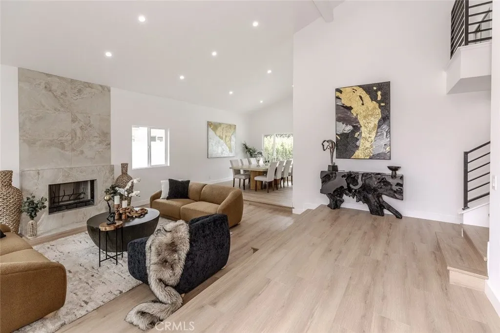 Welcome to 17101 Dearborn Street, a beautifully upgraded 5-bedroom, 4-bathroom home offering over 3,000 sq ft of elegant living space on an expansive 10,800 sq ft lot in the heart of Northridge. This two-story residence features a spacious and functional layout, with a bright and open interior filled with natural light, recessed lighting, and modern finishes throughout. The living room centers around a cozy fireplace, creating a warm and inviting atmosphere for family and guests. The gourmet kitchen is equipped with stainless steel appliances, a center island, and ample cabinetry - perfect for both everyday living and entertaining. Upstairs and downstairs bedrooms provide flexibility for multi-generational living or a dedicated home office. Enjoy the convenience of an indoor laundry room and a rare 3-car attached garage for extra parking and storage. Head outside to a private backyard oasis complete with a large pool, ideal for summer gatherings or relaxing weekends. Located near top-rated schools, shopping, and dining, this stunning home offers comfort, style, and space in a highly desirable Northridge neighborhood.