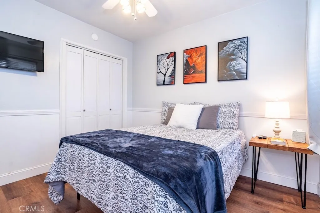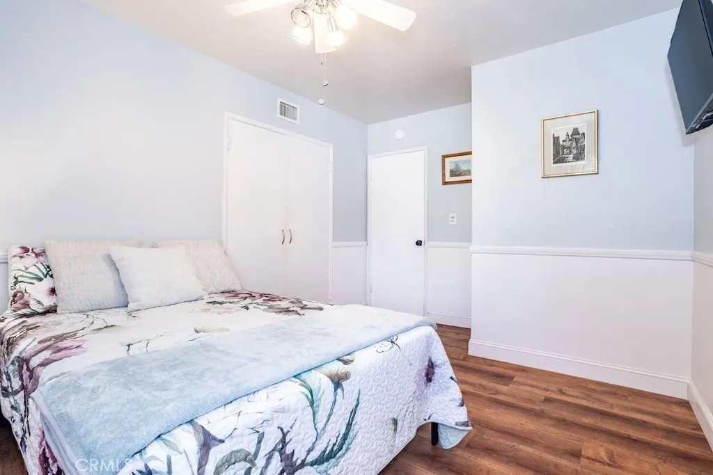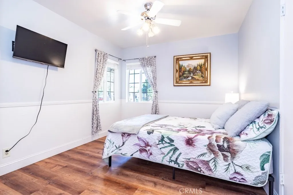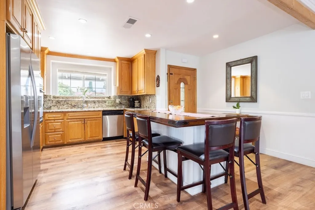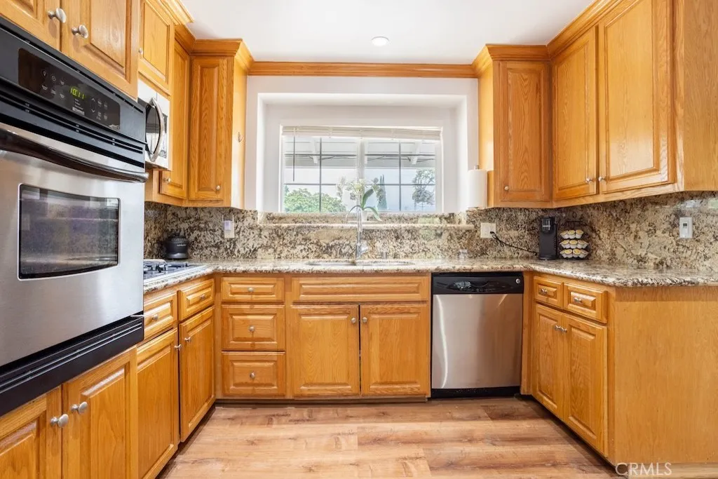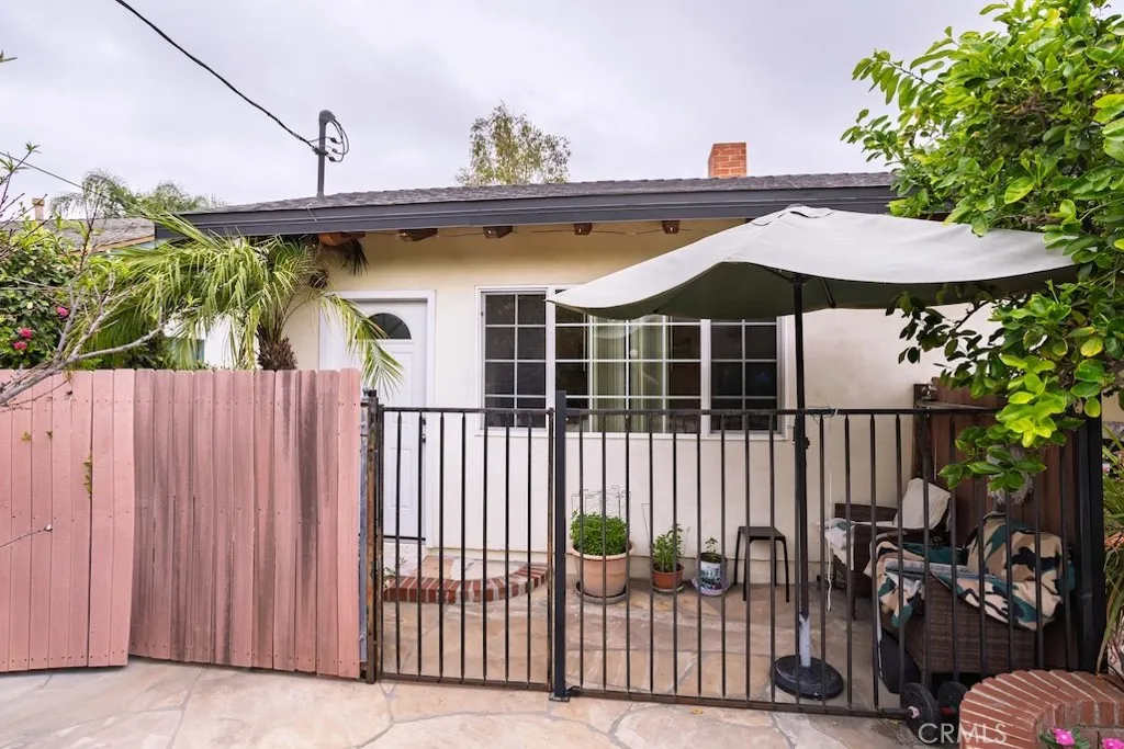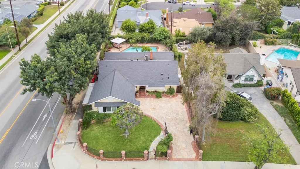 Welcome to this stunning Northridge residence, a 3 bedroom, 2 bathroom home that perfectly blends elegance, comfort, and functionality. Situated on a desirable corner lot, the property is fully fenced with stately red brick pillars and decorative iron gates. Automatic gates open to a secured flagstone driveway and lead to the spacious, finished 2-car garage. The corner location offers ample street parking and the convenience of two separate entryways. Step inside to be greeted by an inviting open concept design that effortlessly connects the kitchen, formal dining area, and living room. Warm, wood-like flooring flows throughout, creating a cohesive and welcoming atmosphere. The updated kitchen is a chefs delight with granite countertops, built in ovens, and a versatile island ideal for casual dining or entertaining. The living room, anchored by a cozy fireplace, opens directly to the backyard oasis. Off the kitchen, youll find a laundry area and an updated full bathroom, perfect for guests or extended family. Down the hall are three generously sized bedrooms and another modern full bath. The primary suite is bathed in natural light and features dual closets for abundant storage. Adjacent to the formal dining area is a permitted living room flex space currently transformed into a charming studio. This versatile area boasts vaulted wood beam ceilings, Spanish tile floors, a kitchenette, private bathroom, and its own separate entry, along with a private patio accessible via the side yard. This space is ideal for extended family, a home office, or easy conversion back to a livi