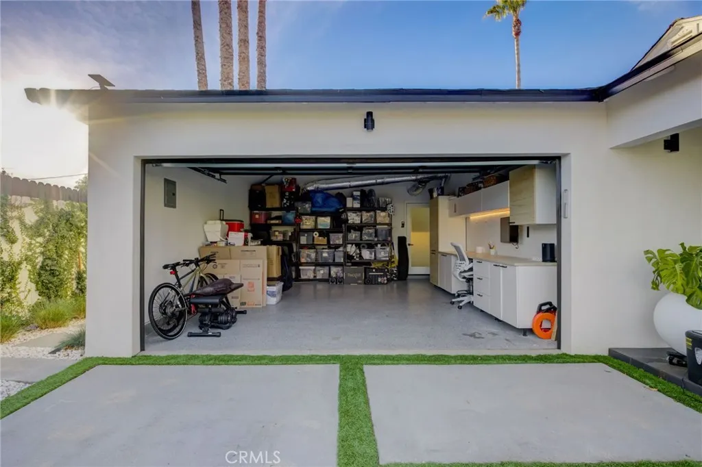 Welcome to 8161 Encino Ave, a stunning contemporary haven in Northridge, California. This 4-bedroom, 3-bathroom masterpiece has undergone a complete remodel, embodying modern design and sustainable living. As you enter through the secure and gated entrance, you'll notice the low-maintenance ficus trees enveloping the property for ultimate privacy. The exterior showcases a Santa Barbara finish, complemented by larger windows that flood the interior with natural light. For the environmentally conscious, this home is equipped with solar panels and a Tesla charger. The landscaping has been thoughtfully designed with turf replacing traditional grass, minimizing maintenance. Exterior gate and lighting are seamlessly controlled via wifi, with lights automatically illuminating the surroundings at sunset and gracefully dimming at sunrise. Security and convenience take center stage with smart home features, including Ring security cameras, main door smart locks, and climate control accessible through a user-friendly phone application. The garage, complete with a new door, offers a work station, ample shelving, and storage. The entire home and garage have been insulated, ensuring comfort in all weather conditions. Step into the backyard oasis where a heated pool and jacuzzi await. The pool area, featuring a natural gas firepit, is controllable through the smart home application. An entertainer's dream, the backyard boasts an expansive deck with a retractable sunbrella, while one of the bathrooms provides direct access for guests or a quick post-pool dry off. Inside, the home exudes lu
