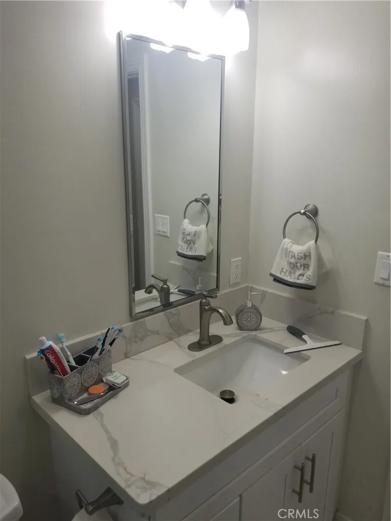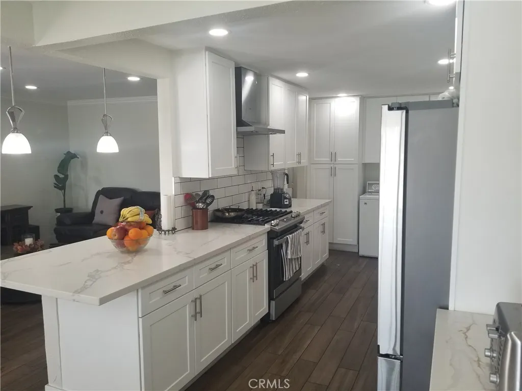 Unique property for an open minded buyer. Property has been modified and divided in two by the previous owner. Current owner has made many inprovements to the front portion of the house. New tile flooring , new recessed lighting, new kitchen cabinets and counter tops with back splash, new modern sink and faucet, new above range hood. Each of the bedrooms have been updated with new flooring, new lighting, fresh paint and window shutters. Direct access to attached garage which has been converted and is being used a 3rd bedroom has also been remodeled with all similar improvements. Bathroom is completely remodeled clean and fresh. Rear portion of the house consists of the original 3rd bedroom and 3/4 bathroom connected to an enclosed rear patio with an additional bedroom, living room and kitchen set up. Rear portion has its own seperate entry. Property is walking distance to Hermosillo Park and a close drive to Cerritos College