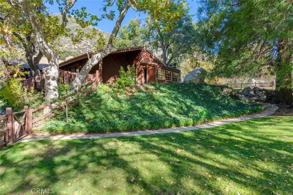 This custom mountain style chalet sits privately amongst big Sycamore and Oak trees. The beautiful lawns and the large rock formations surround the home with a natural fenced meadow beyond. A gated front entrance with a long driveway and a full circle at the home entry and garage. A lower entrance provides access to the two RV garages and the shop. This home offers 3430 square feet, with four bedrooms and three bath, beautiful open beam cathedral, ceilings, large stone fireplace, natural wood accents and large windows to enjoy the beautiful surroundings. The primary suite and one other bedroom, which is currently being used as a game room, are both on the first level. The second level has two bedrooms and a full bath. The living spaces are large and open, warm and inviting. The rear deck goes the entire span of the house and is a very tranquil place to relax. The RV garages are approximately 40 foot and 32 foot deep. There is a guest cottage with a kitchen over one of the garages and an additional single garage workshop that stands alone. The deck and patios are beautifully designed with gardens and gathering areas that are easily accessible and are often enjoyed. This tranquil setting enjoys the four seasons, the slightly cooler temperatures and the mountain feel without the mountain drive. The 2 acres of land provides space for additional uses, orchard, vineyard, hobbies and more. Easy to enjoy this home and the possibilities of room to personalize the use of the land. More photos coming.
