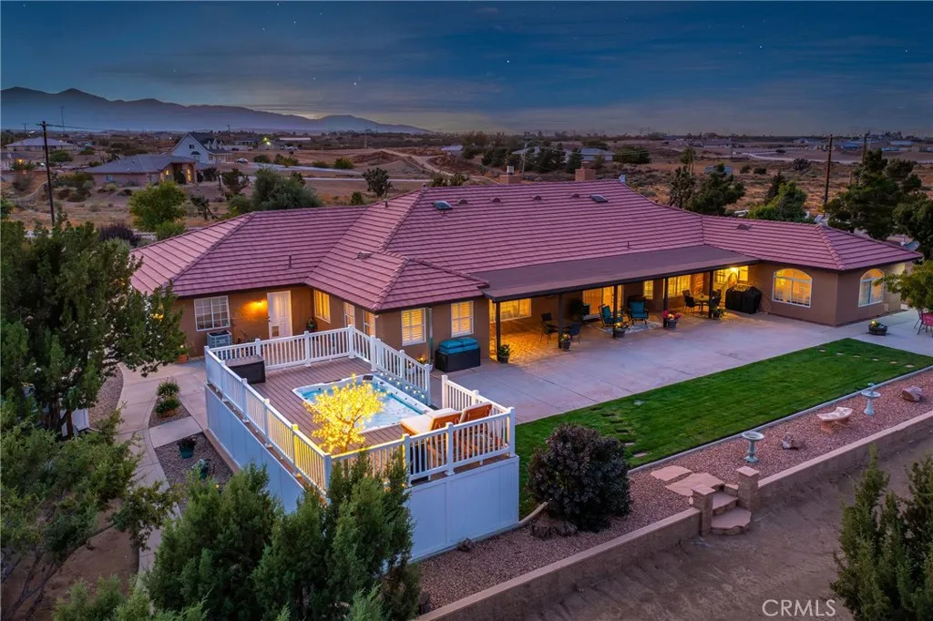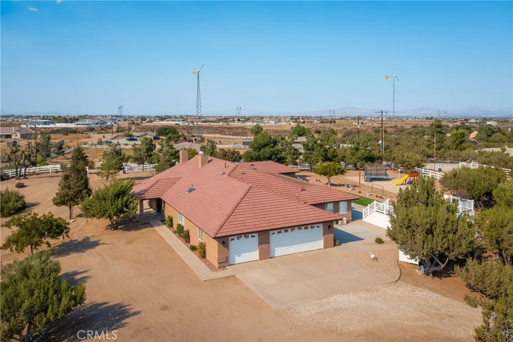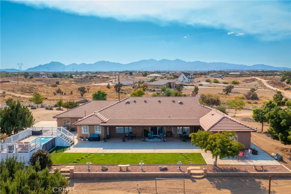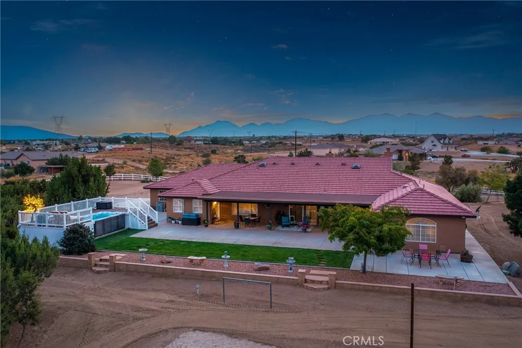 Must see home with amazing views! Come see this beautiful ranch style horse property located on over 2 acres of land. This home features 4 bedrooms, 2bathrooms, with 2 additional bonus rooms that can be used as bedrooms or offices. The interior floor plan is great for entertaining with a remodeled kitchen that opens to the family room and has a nice view of the covered patio. The home features dual master suites, one with a wood burning fireplace, and a split floor plan for multi generational families. There is a walk in pantry in the kitchen, a butler's pantry with extra storage, and a laundry room with room for 2 washers. The extra bedrooms are a good size and the 3 car garage is finished with built in cabinets and a tandem extra space for storage. Outside you will find the covered patio, swim spa with deck, volley ball court with kids play area, and 2 sheds, each on a slab foundation. The property has a 500 gallon propane tank, as well as a new electric heating and AC system for the main portion of the home. The spacious property provides views of the desert and surrounding mountains with breathtaking sunsets.