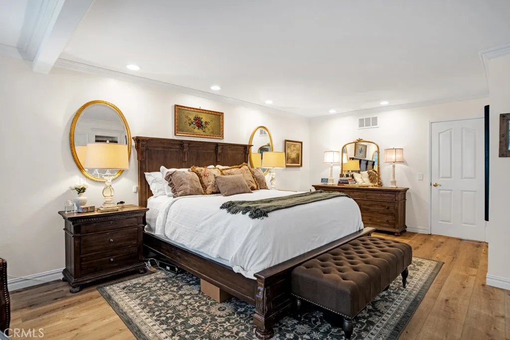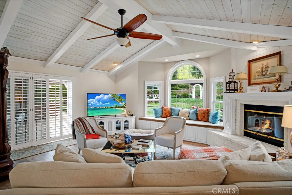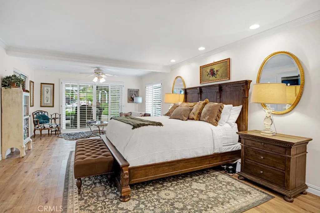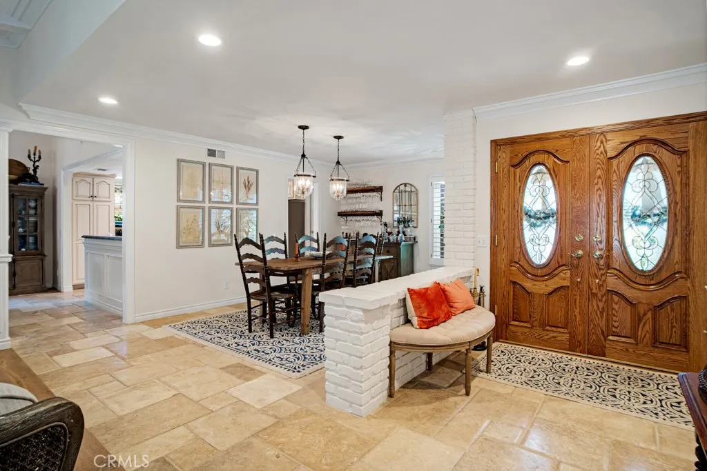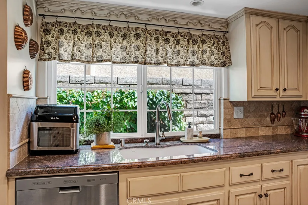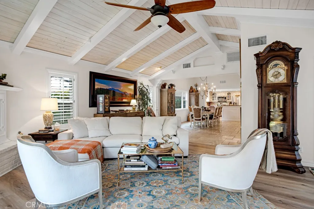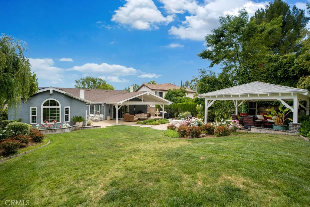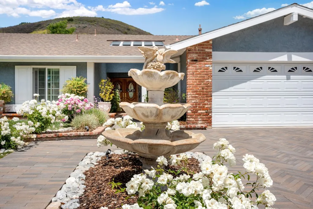 Executive Single-Story Home in Chaparral Estates, Oak Park Nestled in the prestigious Chaparral Estates area of Oak Park, Ventura County, this beautifully expanded custom single-story residence offers the perfect blend of elegance, comfort, and privacy. On the market for the first time in decades, this meticulously maintained home is a rare gem. From the moment you arrive, the professionally landscaped grounds with lush greenery, a serene fountain, and a custom brick paver driveway set a welcoming tone. Double entry doors open to an airy, open-concept floorplan featuring sophisticated travertine floors and abundant natural light. The formal living room exudes warmth with its rich wood flooring, beamed ceiling, and a striking custom fireplace. Just adjacent, the formal dining area boasts travertine marble floors, crown molding, and recessed lighting, creating a refined space for entertaining. The heart of the home is the custom cooks kitchen, designed for both function and style. It features stainless steel appliances, and granite countertops, seamlessly flowing into a casual dining or bonus area and a spacious family room. The family room offers vaulted beamed ceilings, a bay window, a ceiling fan, and a second beautiful fireplace perfect for cozy gatherings. The guest bathroom, conveniently located off the family room, includes a shower. The luxurious primary suite is a true retreat with wood-like floors, recessed lighting, a ceiling fan, a walk-in closet, an additional mirrored wardrobe, and a generous sitting area with direct access to the backyard. The ensuite bathroom