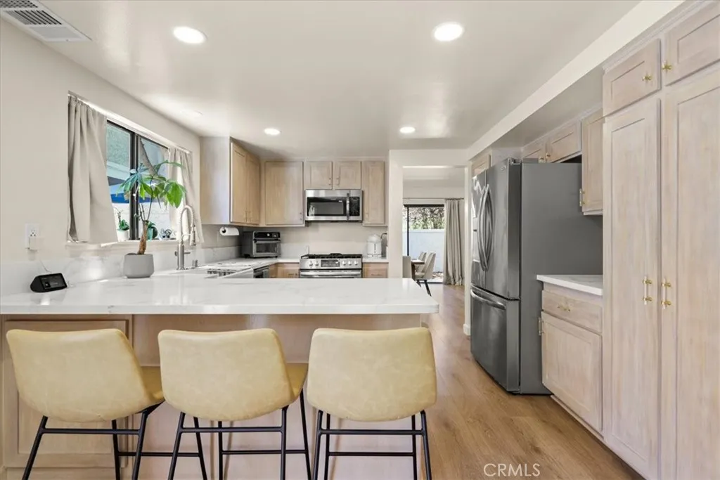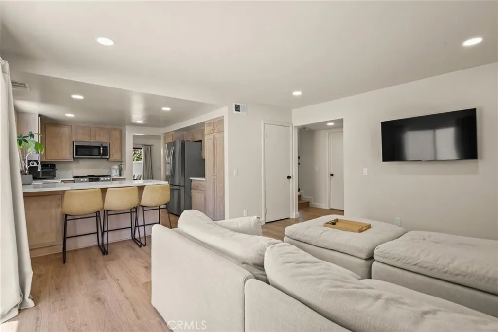 Welcome to this exceptional end-unit townhouse nestled in the coveted Oak Park community, where quality craftsmanship meets modern convenience. This fully renovated three-bedroom, two-and-a-half-bathroom residence spans 1,769 square feet of thoughtfully designed living space that balances comfort with functionality. The home showcases meticulous attention to detail throughout, featuring completely updated lighting, flooring, vanities, plumbing, and electrical systems, including new appliances and a new electrical panel for enhanced safety and efficiency. The leased solar panels provide comprehensive electricity coverage, demonstrating both environmental consciousness and practical cost savings. With only one shared wall located in the garage area, this end-unit configuration offers enhanced privacy and natural light. Relax and unwind in the inviting living area, where a cozy fireplace provides warmth and ambiance. The open kitchen is wonderful for entertaining indoors or outdoors attached to the back patio perfect for your BBQ. The master suite upstairs is a sanctuary with its walk-in closet, show rack, and a luxurious ensuite bathroom complete with a double sink vanity and separate shower. Two other bedrooms (one up and one down) are perfect for family, guests, or working from home. The Oak Park neighborhood stands as one of the area's most desirable communities, renowned for its excellent educational opportunities. Residents will appreciate the proximity to top-rated schools, including Oak Park High School just moments away, along with Brookside Elementary and Medea Creek