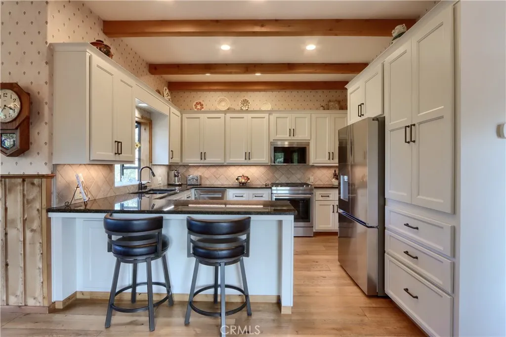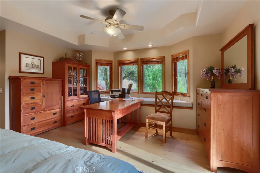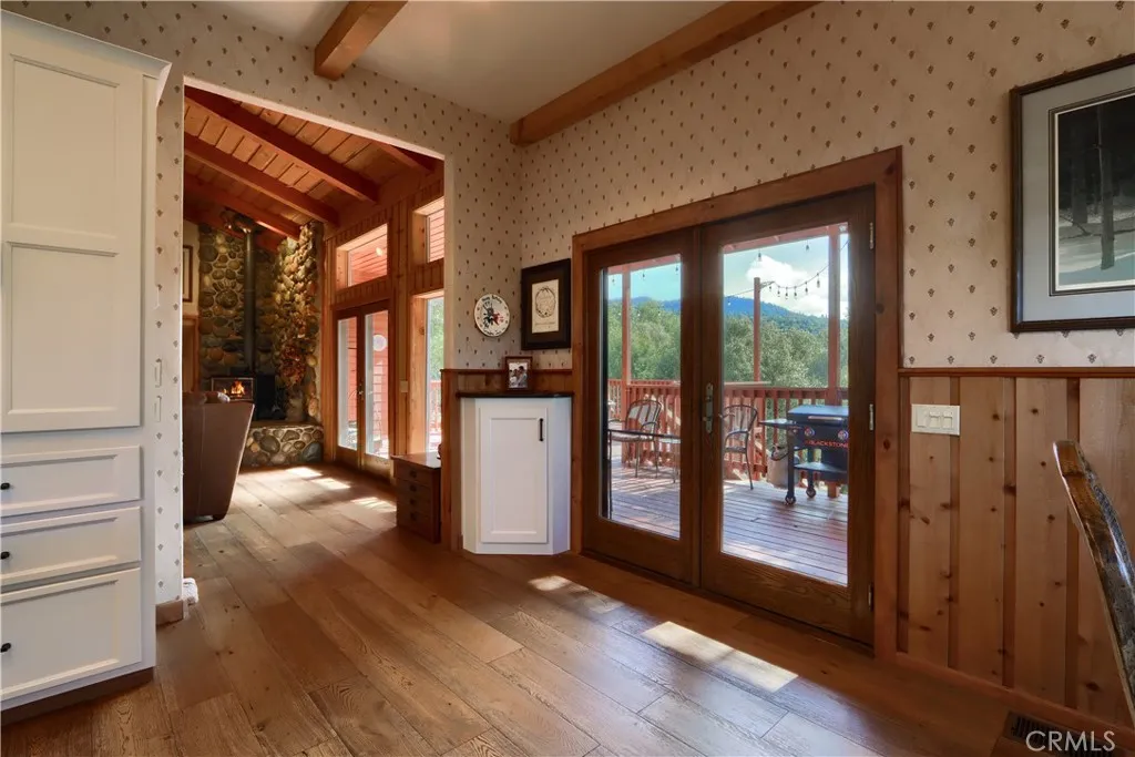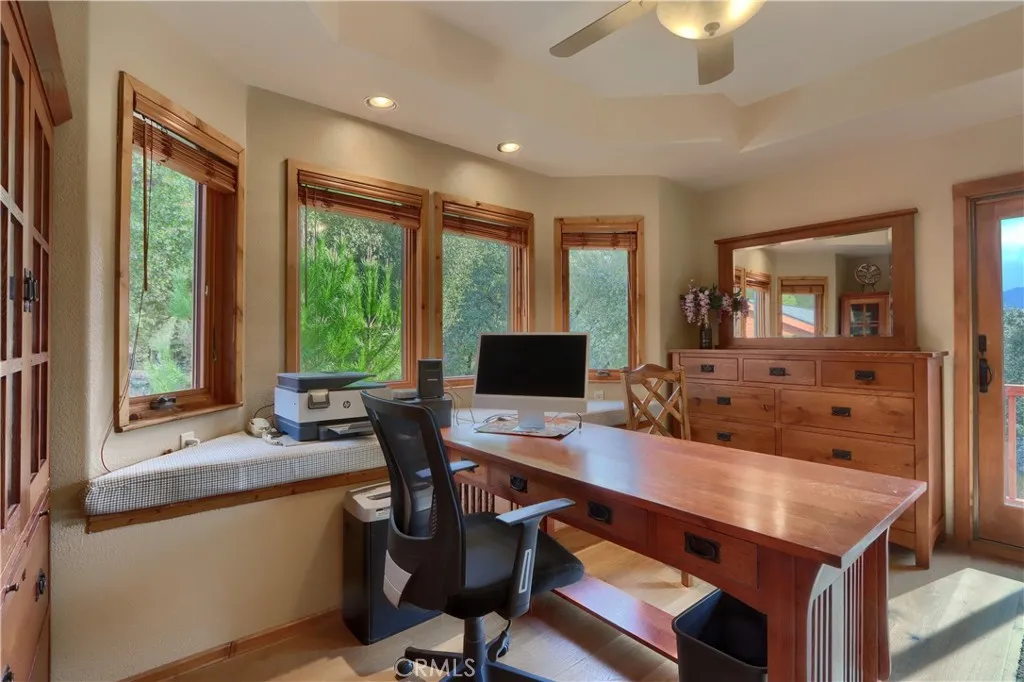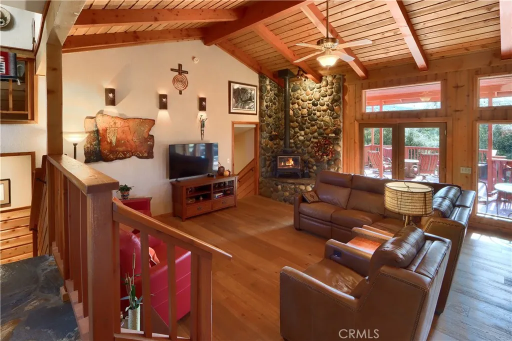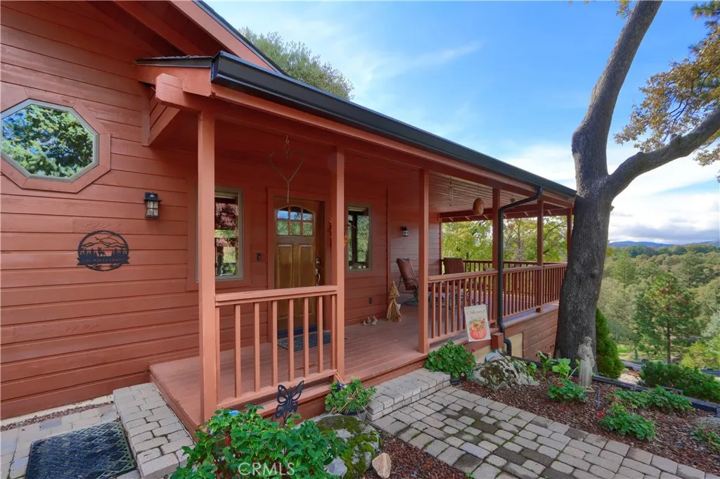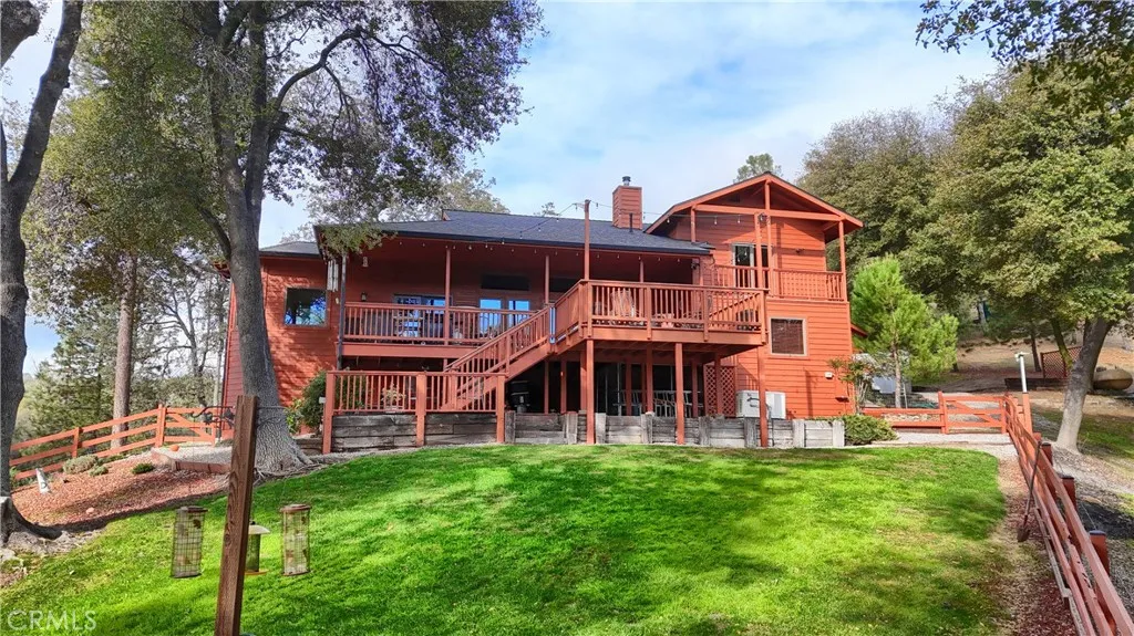 Peaceful Mountain Retreat with Views on 5.46 Acres Beautiful, well-cared for tri-level custom home with picturesque views, situated above the 3,000 ft elevation on a serene 5.46-acre park-like setting. This 3 bedroom, 2 bath, 2,210 sq. ft. home offers both comfort and character, with covered front and rear decks perfect for enjoying the outdoors in every season. Inside, you'll find an EPA-compliant freestanding woodstove on a raised rock hearth, a whole-house fan, and a zoned HVAC system for year-round efficiency and comfort. An automatic backup generator runs the entire home for added peace of mind, plus a gravity fed 2500 gal water storage tank. For added fire defense, lava rock landscaping is added The kitchen features self-closing cabinet doors and drawers with easy pull-outs, granite countertops, a garden window, and quality name-brand appliances including a Bosch dishwasher and JennAir appliances. Engineered wood flooring flows through the main living areas, and a special slate entryway creates a warm welcome. Anderson double-pane windows bring in abundant natural light, and Anderson exterior doors add a quality finish throughout. The dining room and primary bedroom both feature large bay windows with built-in bench seating and extra storage underneath. The primary suite also enjoys its own private balcony overlooking the beautifully landscaped yard. The home showcases open-beam knotty pine high ceilings with cedar accents, along with special-cut cedar exterior siding for a distinctive mountain lodge feel. Outside, you'll appreciate the landscaped front yard, fenced b