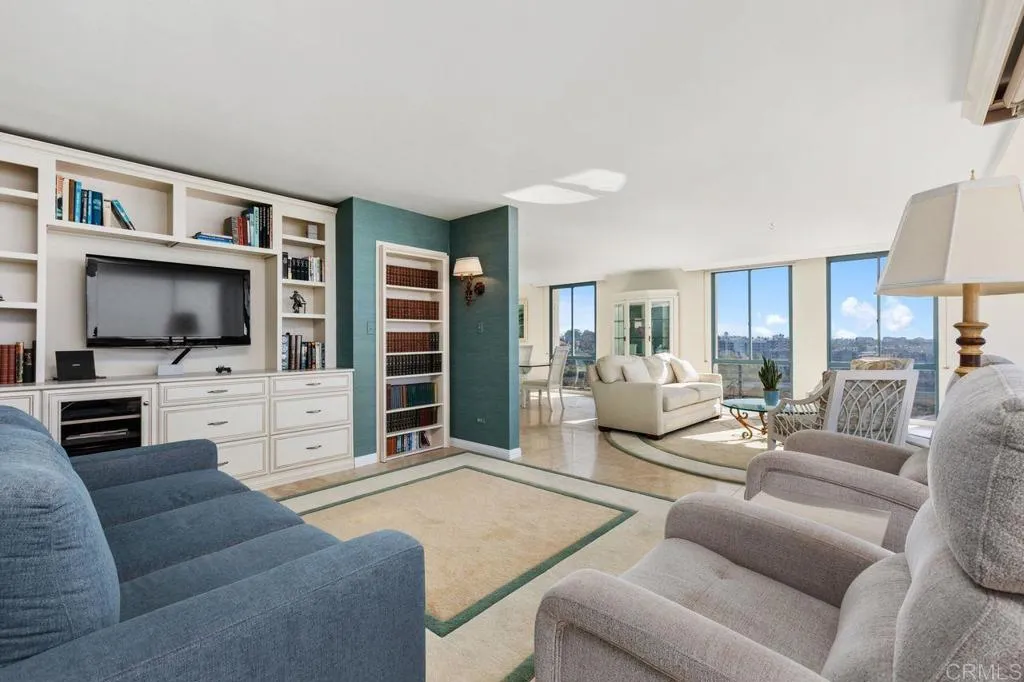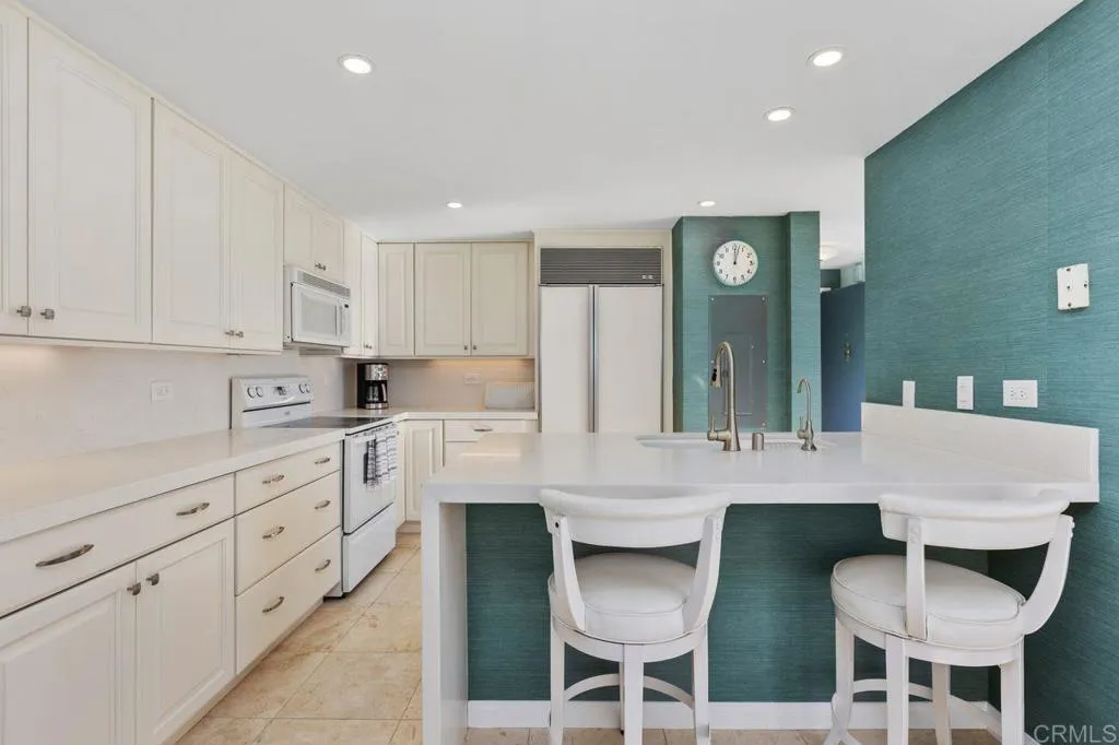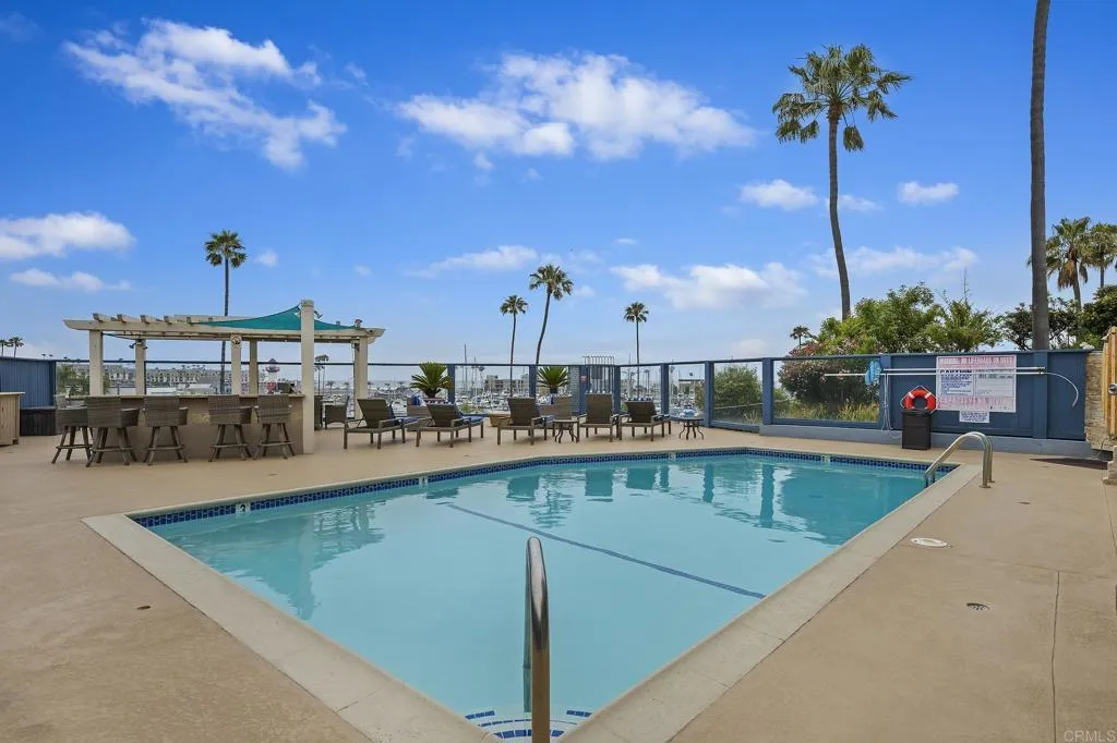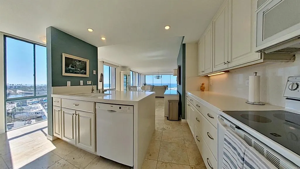 Whitewater Pacific Ocean and Oceanside Harbor views! This is the only highrise condo building on the coast for miles, and this unit gives you the added southern views on the A side of the building. Relax on your private balcony while watching the boats drift in and see the surfers catch the last wave as the sun sets. One of the best locations in SoCal, this is a rare opportunity to live your dream! Kitchen has been recently remodeled with newer high-quality cabinets with pull-outs and soft-close drawers, along with luxurious white quartz counters and newer appliances. As with most units in the building, the wall has been removed between living room & second bedroom to create an open living area with built-in entertainment center. Hi-end solar shades throughout the living areas. Hall bath has been remodeled with elegant custom tile, newer fixtures. Master bedroom has a roomy walk-in closet and adjoining remodeled bath. Hallway laundry center has been refreshed with newer washer/dryer and tankless water heater. Amenities in the Towers include a pool, a spa, a barbecue, gated parking, an updated recreation/meeting room, an exercise room and a secure building. Dues also cover your WIFI, basic cable, water, and on-site full time building manager. Make this prestigious address at 1200 Harbor Dr N yours and enjoy beach life! Surf's up!
