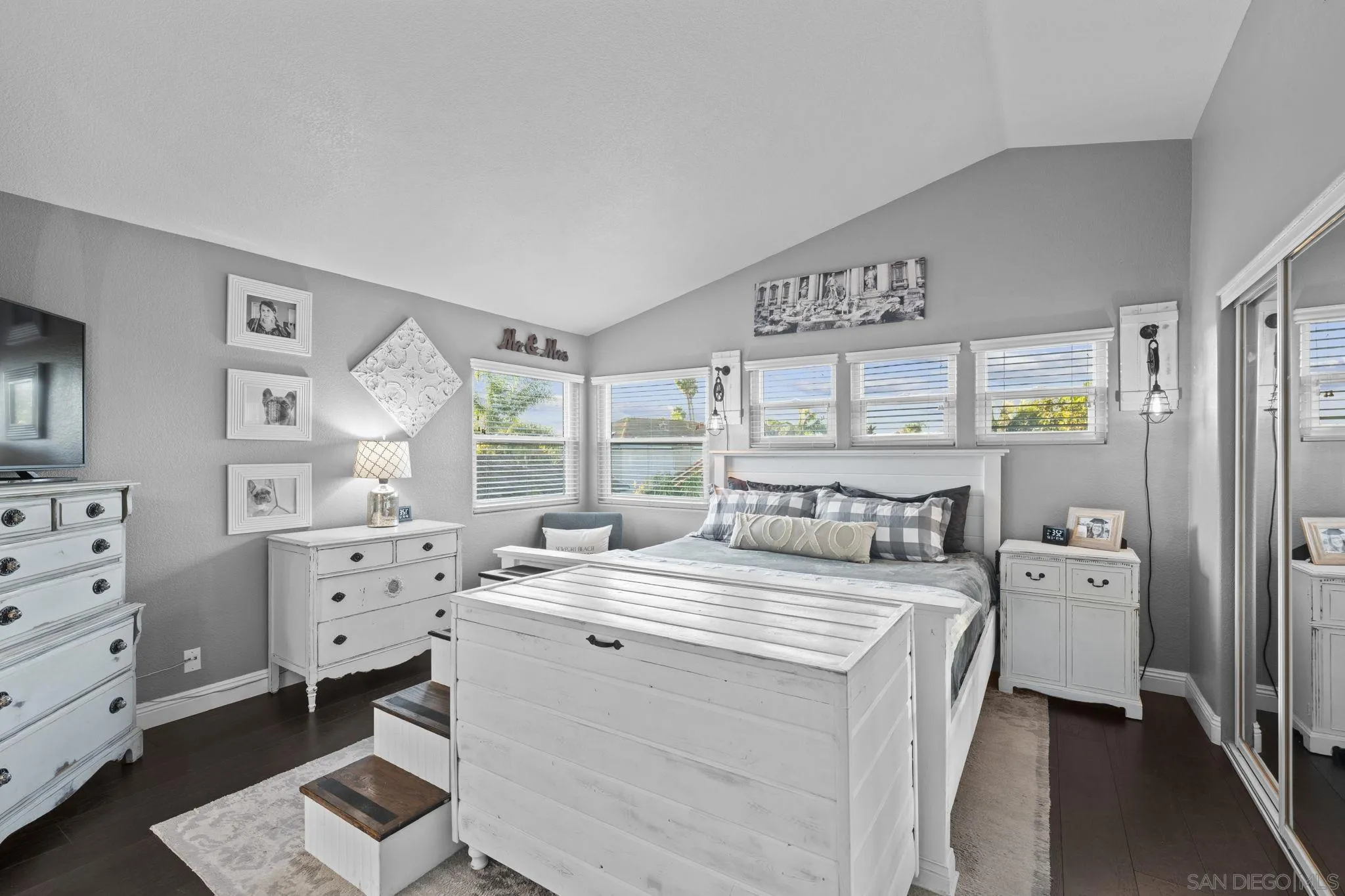 Gorgeous 3BR SOLAR-powered home on a ‘cul-de-sac’ location in desirable Rancho Del Oro of Oceanside! No expense has been spared as this home is 100% upgraded & truly a must-see! The interior features a dramatic vaulted ceiling & upgraded luxury windows & slider allowing for tons of natural light throughout every room in the home! Upgraded w/ ‘french' white oak flooring & high-end tile throughout (NO carpet), completely remodeled gourmet kitchen w/ granite slab countertops & subway tile backsplash, custom cabinetry & breakfast bar, all stainless steel appliances including a high-end Fisher & Paykel DCS stove & gas range/ oven hood, upgraded recessed & unique pendant lighting & more! The ‘barn’ style doors between the main living & family room areas give the living area a charming, rustic look & feel. Every window in the home has been upgraded to luxury vinyl & triple-pane windows were installed along the rear of the home for privacy; all the windows & slider have a transferable, lifetime warranty. The primary bathroom features a dual vanity w/ Italian stone slab countertops & heated hexagon flooring by Schluter, shiplap accent walls & a custom, reclaimed barn door. The doorless, 'dam less' shower is decorated w/ subway tiles & hexagon tile flooring & features a bluetooth speaker system & freestanding, modern tub. WOW! Each bathroom has been updated w/ modern fixtures & the 2nd bath features a granite slab countertop & subway tiles. There’s also a custom-made laundry cabinet in the upstairs hallway & full-size laundry room on the entry-level.