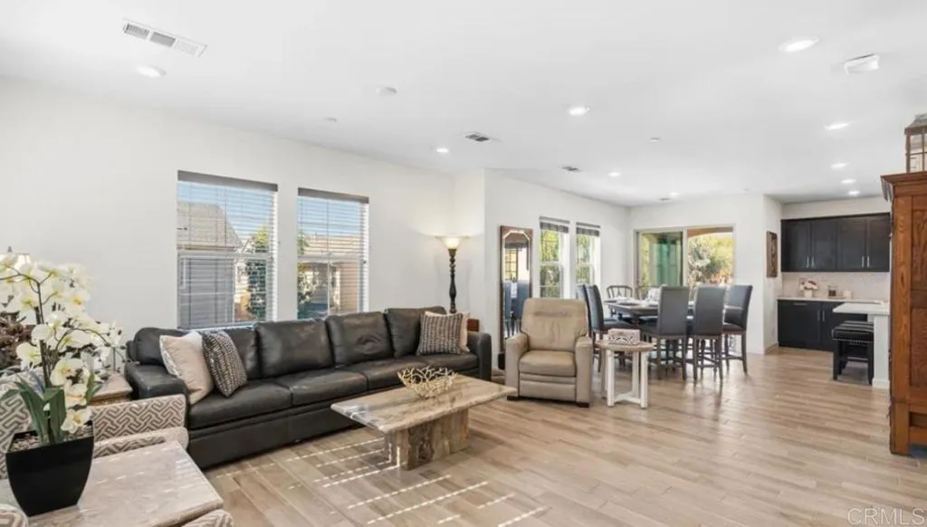 NEW PRICE IMPROVEMENT $768,500 Welcome to 4336 Harbor Way, Unit 1 a beautifully upgraded corner-unit townhome in the gated Saint Cloud community of Oceanside. This home perfectly blends modern luxury, smart design, and coastal comfort. The entry level features a private bedroom with an ensuite bath, ideal for guests, a home office, or multigenerational living. Upstairs, high ceilings, recessed lighting, and large dual-pane windows fill the open living space with natural light. At the heart of the home, the chef-inspired kitchen shines with white quartz countertops, rich cabinetry, stainless steel appliances, and an LG SMART refrigerator. The open layout flows seamlessly into the dining and living areas, while the private balcony offers the perfect spot to enjoy the ocean breeze and golden sunsets. Each of the three bedrooms includes its own ensuite bathroom. The primary suite is a true retreat with a custom walk-in closet and spa-like bath. Additional highlights include luxury vinyl plank flooring, smart-home features, an LG ThinQ washer and dryer, and a high-efficiency tankless water heater. The finished two-car garage offers built-in storage and organization. Enjoy resort-style amenities, a sparkling pool and spa, elegant clubhouse, fitness center, BBQ areas, playground, and half basketball court. Located just 5 miles from the Oceanside Pier and close to top-rated schools, dining, shopping, and the new Frontwave Arena, this home offers the best of Southern California coastal living. FHA and VA approved, move-in ready and waiting for you.