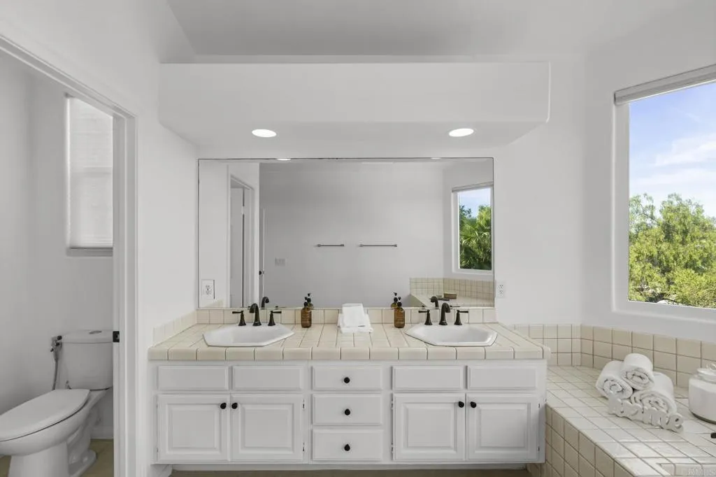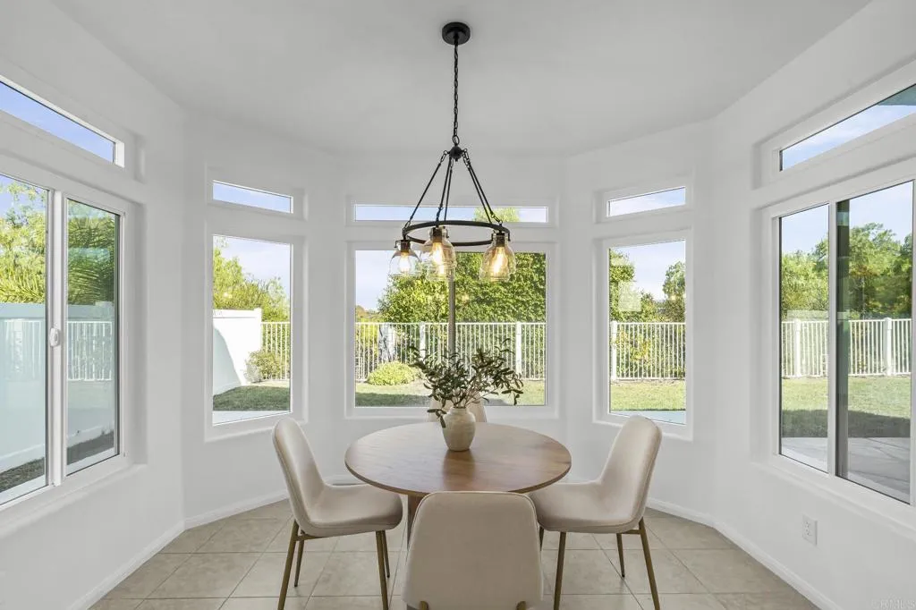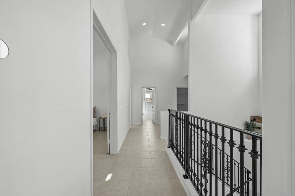 BACK ON MARKET AT NO FAULT OF SELLER OR HOME! Seller will entertain offers between $1,299,000 to $1,349,000. FULL BEDROOM AND BATHROOM DOWNSTAIRS! Located in the highly sought-after gated community of Southridge Estates of Ocean Hills in Oceanside, this 4 bedroom/3 bathroom beautifully upgraded home boasts 3,046 sqft of dynamic architecture, SOLAR (fully paid off lease), and timeless elegance. Grand entry through the striking custom iron double-door to be met with soaring vaulted ceilings, neutral tile floors, and an abundance of natural light pouring through the oversized dual pane windows. The first level offers a thoughtfully designed floor plan featuring a formal living room with gas fireplace, an elegant dining space with modern lighting, and a bright, open kitchen complete with stainless steel appliances, an expansive island for culinary prep, and a charming breakfast nook with bay windows. The family room features fully retractable doors that open wide to a private backyard retreat, perfect for indoor-outdoor entertaining. The downstairs bedroom and full bath provide flexibility for guests, extended family, or home office use. Upstairs, the primary suite is a peaceful sanctuary with picturesque mountain views, a generous walk-in closet with custom built-ins, dedicated vanity space, and a spa-inspired bathroom with a deep soaking tub. Bonus loft area upstairs with walk-in closet offer endless opportunities for upstairs living space & storage! Enjoy a lush backyard with blooming roses, vinyl fencing & wrought iron fencing, and no neighbors directly behind, offering bot