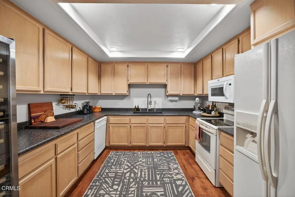 Discover this inviting 2-bedroom, 1.5-bath condominium in the heart of Mira Monte. Enjoy stunning mountain views through expansive picture windows in the living room, or cozy up by the gas fireplace on cool Ojai evenings. Vaulted ceilings fill the space with natural light and create a warm and open atmosphere throughout this second-floor home. The spacious kitchen is ideal for both home cooking and entertaining, while the rear balcony - accessible from both bedrooms, offers a serene setting for morning coffee, outdoor dining or evening relaxation. Additional features include a private garage, in-unit stackable washer and dryer, and access to community amenities such as a swimming pool and clubhouse, maintained by the HOA. With an Ojai Trolley stop just steps from your door and the scenic bike path nearby, you'll have access to downtown Ojai's charming shops and restaurants, while also being just a short ride or drive to the beaches of Ventura. Well-maintained and move-in ready, this Mira Monte gem combines mountain tranquility with central convenience -a perfect place to call home.