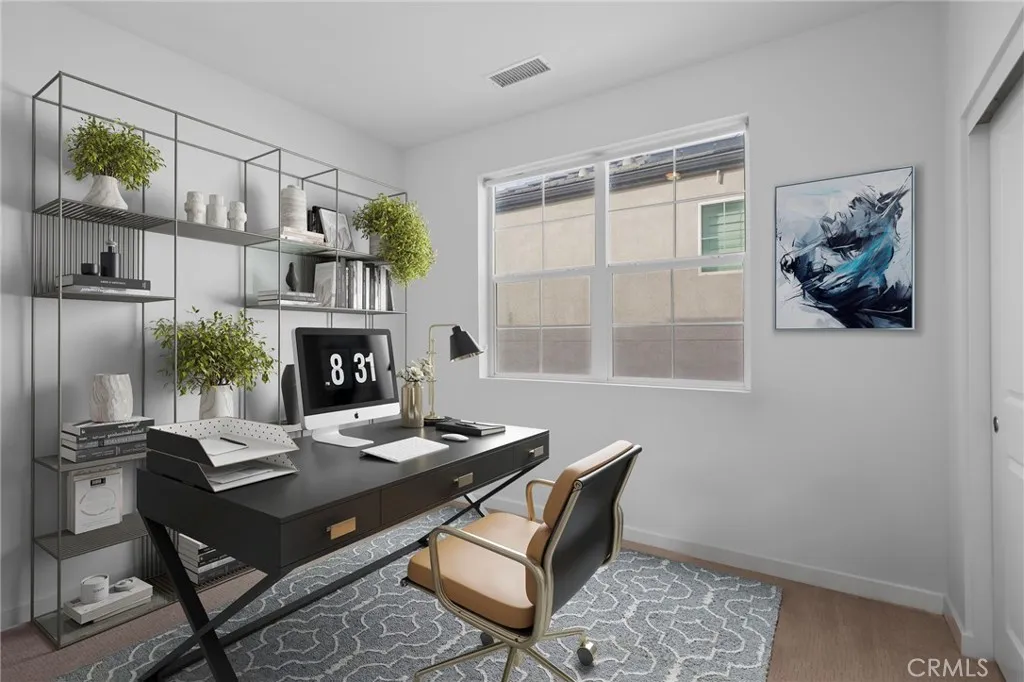 A refined blend of modern design, efficiency and long term upside, this upgraded 3 bedroom 2.5 bath home offers exceptional value in one of Ontarios fastest growing corridors. Inside, the home feels elevated with soaring 10 foot ceilings that create an open, spacious atmosphere, paired with custom fitted blinds, fiber optic internet, smart light switches and a Eufy doorbell camera with no subscription necessary. The kitchen combines style and function with quartz countertops, a generous island with spacious seating, a farmhouse single basin sink, reverse osmosis drinking water and a premium Samsung Bespoke refrigerator with a built in Beverage Center, dual ice options and flexible storage. The included Samsung SuperSpeed Steam Washer provides 30 minute wash cycles with steam enhanced cleaning, and the Samsung Multi Steam Moisture Sensor Dryer reduces wrinkles and helps prevent over drying. Paid off solar panels with full bird proofing, along with neighboring homes also being proofed, help keep exterior areas cleaner by preventing birds from nesting under exposed panels. Additional features include a spacious walk in primary closet, a tankless water heater, two quarter landing stairs and a tandem garage accommodating approximately 2.5 cars with smartphone controlled access and a delivery camera. The home offers exceptional convenience with a direct view of the community park, clubhouse, gym, Zoom room, package lockers and pool, plus abundant guest parking directly in front. Grand Park is under construction across Archibald, a new elementary school is minutes away and the pro