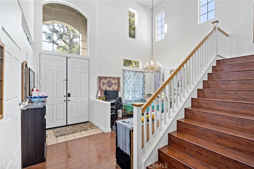 Welcome Home! Step into this stunning luxury family residence offering 5 bedrooms +, 3 bathrooms, and a spacious 3-car tandem garage across 2,705 sqft of beautifully designed living space. With elegant wood flooring throughout, this home blends timeless style with modern convenience. Enjoy peace of mind with a fully paid-off 7.26 kW solar system (installed 2019), Tesla Powerwall 2 (2023), and EV wall connectorall seamlessly integrated into one clean energy ecosystem. Plus, with no HOA, no Mello Roos, and a low tax rate, this home is as practical as it is luxurious. The landscaped front yard greets you with vibrant flowers, while the backyard is a true retreatfeaturing multiple fruit trees, a spacious covered patio, and a row of tall trees for privacy. Whether its family gatherings, quiet evenings, or playful afternoons, this outdoor space is designed for joy and relaxation. First Floor: Guest rooms and a full bath make hosting loved ones or multi-generational living effortless. Grand Entry: Soaring ceilings and a sun-filled formal living room create a warm, welcoming atmosphere. Gourmet Kitchen: An open-concept design with an oversized island, quartz countertops, breakfast bar, generous walk-in pantry, and ample counter spaceperfect for both everyday meals and entertaining. Upstairs Comforts The expansive master suite offers a spa-like retreat with a walk-in shower, soaking tub, dual sinks, and a large walk-in closet. Three additional versatile bedrooms and a conveniently located laundry room complete the upper level, ensuring comfort and functionality for the whole family.