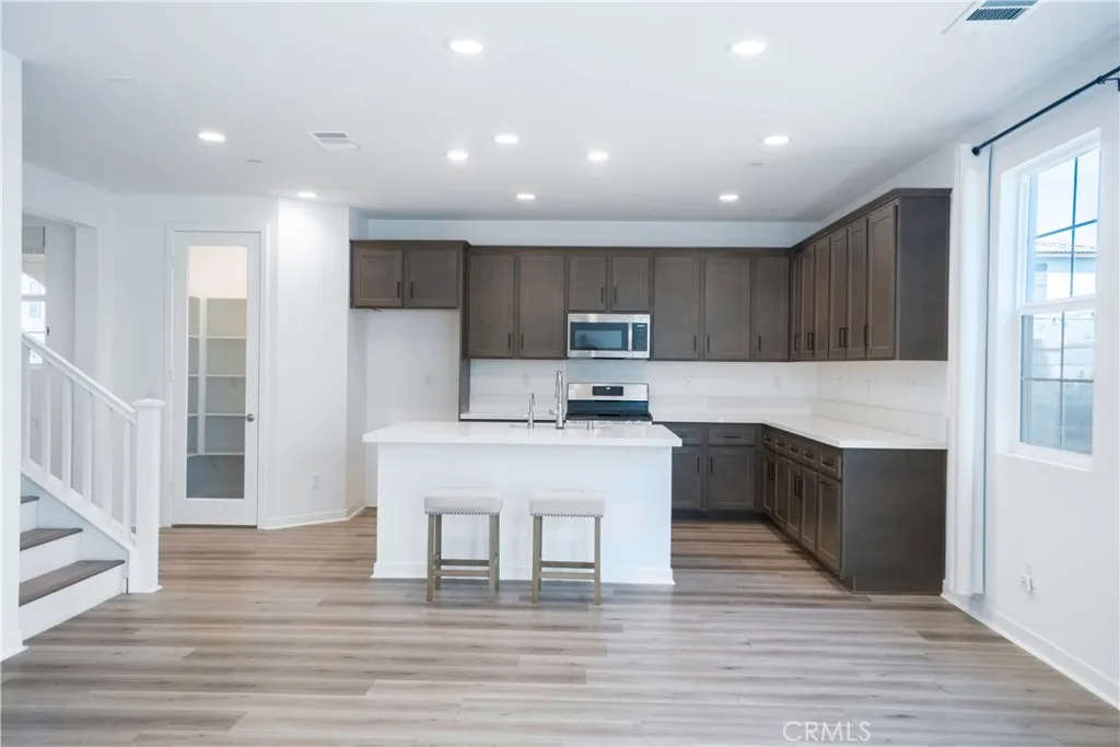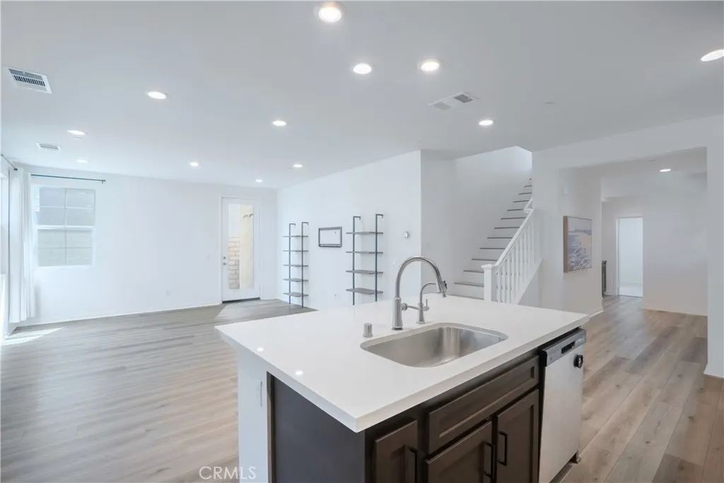 ** Modern Living Done Right in Cambridge Court** Experience elevated living in this beautifully upgraded residence located in the highly sought-after Cambridge Court community of Ontario. Step inside and immediately experience the difference with wide-plank luxury vinyl flooring, recessed lighting, and a light-filled open-concept floor plan designed for both everyday comfort and effortless entertaining. The kitchen is the true centerpiece, showcasing sleek quartz countertops, stainless steel appliances, a walk-in pantry, and an expansive center islandperfect for hosting, meal prep, or gathering with friends and family. Just beyond the living area, sliding glass doors lead to a private wrap-around yard finished with premium artificial turf, creating a clean, low-maintenance outdoor space ideal for entertaining, pets, or relaxing without the upkeep. The main level offers a full bedroom and bathroom, providing versatility for guests, multi-generational living, or a dedicated home officewhatever fits your lifestyle. Upstairs, a generous loft adds valuable flex space for a media room, workspace, or additional lounge area. The primary suite delivers a true retreat, complete with two spacious walk-in closets and a spa-style bathroom featuring dual vanities, quartz finishes, and an oversized walk-in supershower. Two additional bedrooms and a full bath complete the upper level with comfort and functionality. Additional highlights include a direct-access two-car garage and energy-efficient leased solar, offering long-term savings and sustainability. Ideally located within a well-main