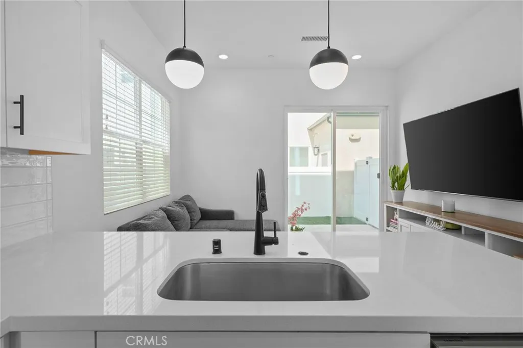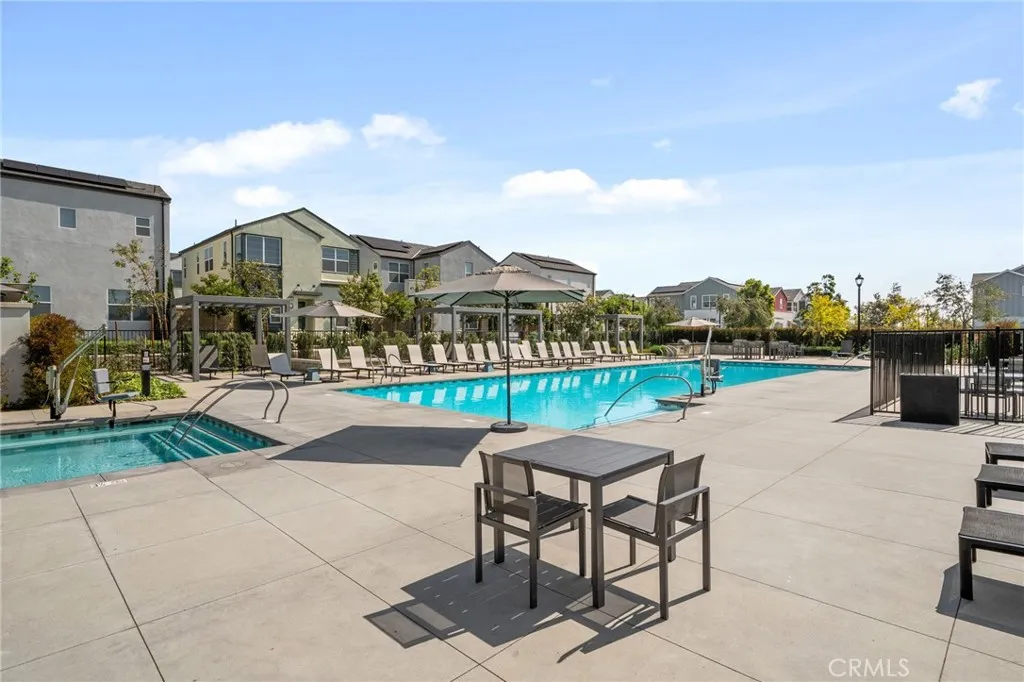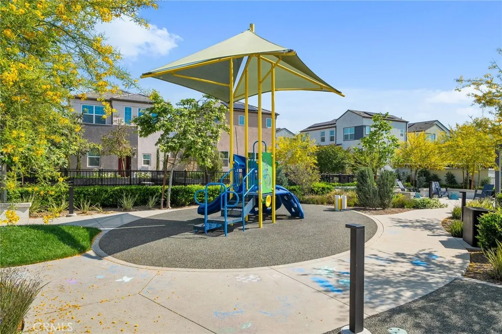 Welcome to this turnkey home in NUVO Parkside, Ontario with PAID-OFF SOLAR! This beautifully upgraded residence offers 1,044 square feet of open-concept living space, filled with natural light. It features two spacious bedrooms, two and a half bathrooms, a versatile loft for additional living or office space, and a one-car garage with an extra parking spot. Stylish designer upgrades include: luxury vinyl plank flooring and plush carpeting, White Sand quartz kitchen countertops, sleek white Thermafoil cabinetry, full 4x16 tile backsplash, matte black cabinet hardware and faucet, pendant lighting and an open rail stair system. This home also features the state-of-the-art EVO Smart Home Package. Sliding doors lead you into the private backyard with a cement patio and turf. Ideally situated across from The HUB, this home gives you direct access to Parksides premier recreational amenitiesincluding a dog park, swimming pool, spa, event room, fitness center, and multiple play areas. Do not miss your opportunity to own this turnkey, amenity-filled gem in Ontario Ranch!