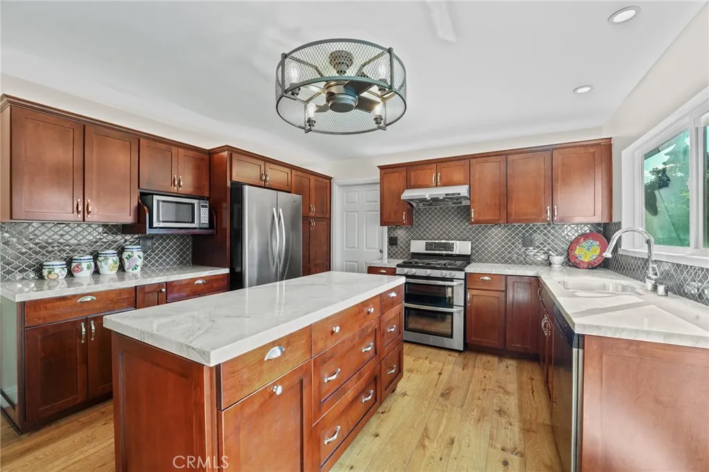 Welcome to this charming and beautifully maintained 3-bedroom, 2-bath home nestled in one of Oranges most desirable neighborhoods. Featuring fresh paint, new carpet, and thoughtful upgrades throughout, this residence blends comfort, functionality, and California charm. Inside, youll find a cooks kitchen designed for those who love to entertain complete with a professional-style oven, abundant counter space, and a bright view overlooking the backyard. Whether youre preparing a family meal or hosting friends, this kitchen truly serves as the heart of the home. The main-floor bedroom and full bath offer flexibility for guests, multi-generational living, or a convenient home office. The open living and dining areas flow seamlessly to the outdoors, creating an ideal setting for gatherings. Step into your own private backyard retreat, where mature fruit trees pomegranate, orange, tangelo, lime, mandarin, and avocado provide both beauty and bounty. A bonus backyard structure adds even more versatility, perfect as a home office, gym, studio, or man cave. With its inviting gated entry, Spanish tile roof, and manicured landscaping, this home radiates warmth and curb appeal. Conveniently located near parks, shopping, dining, and freeway access this is Orange living at its finest.