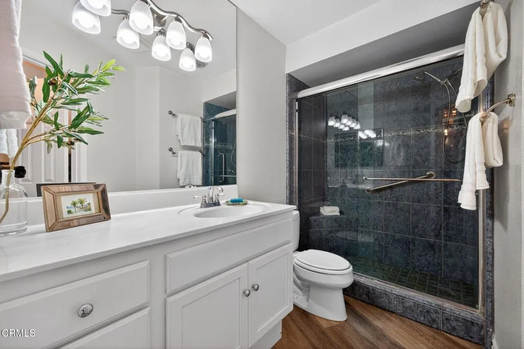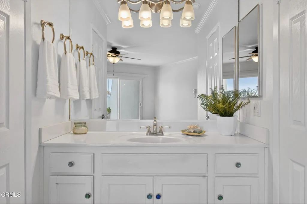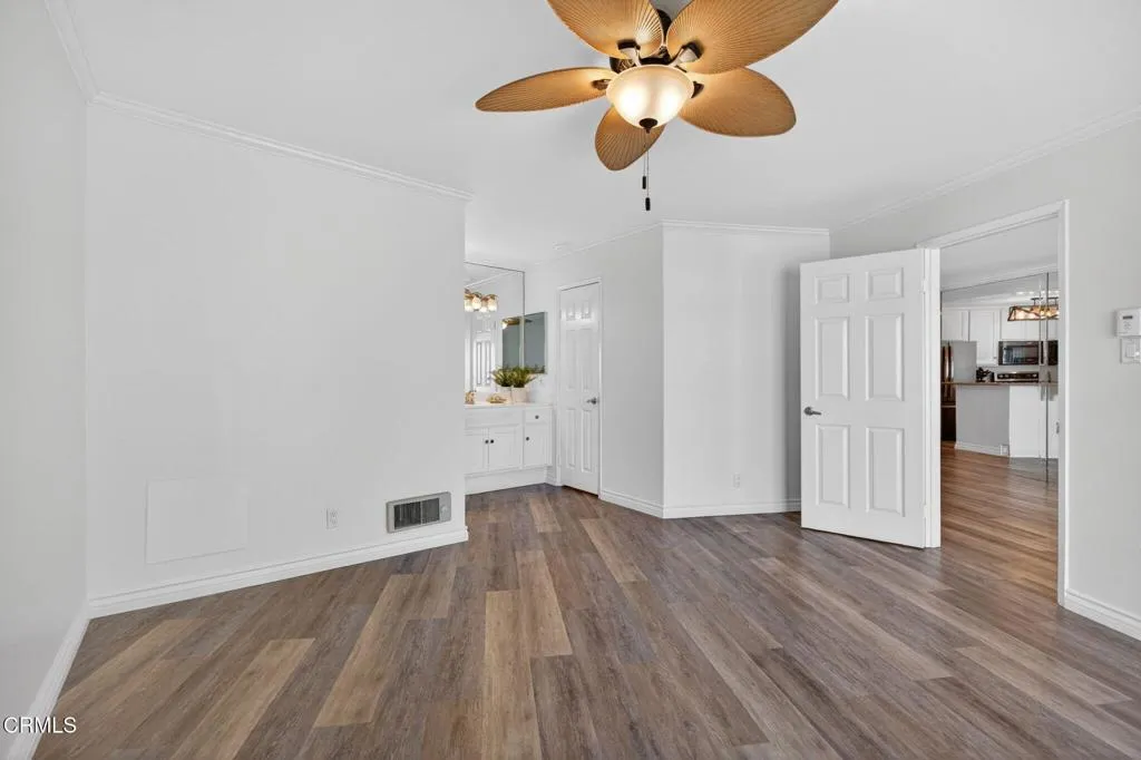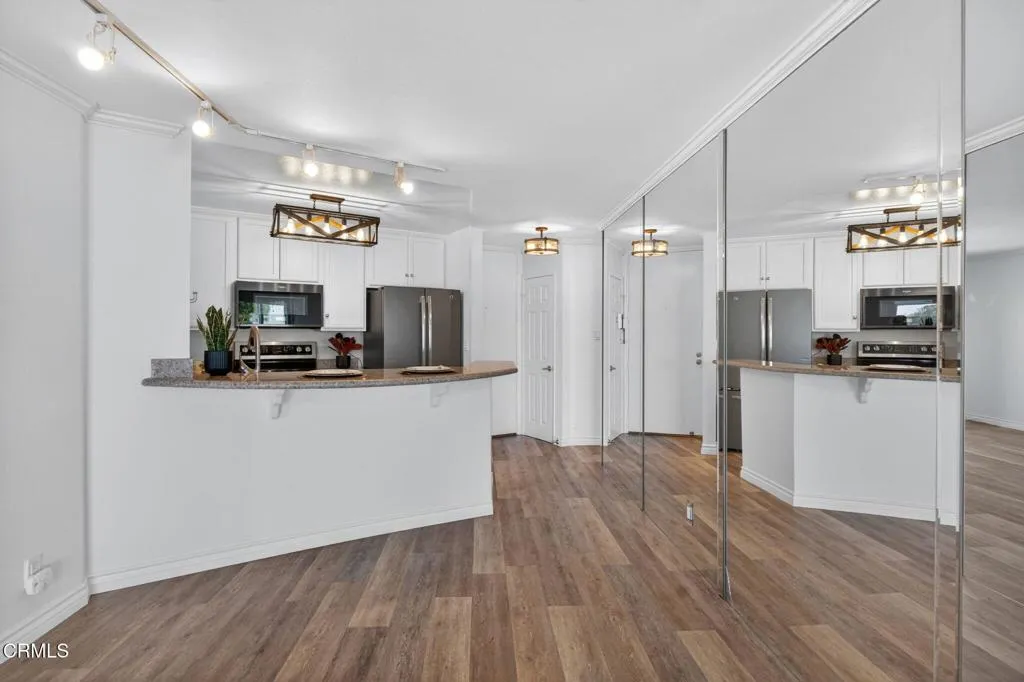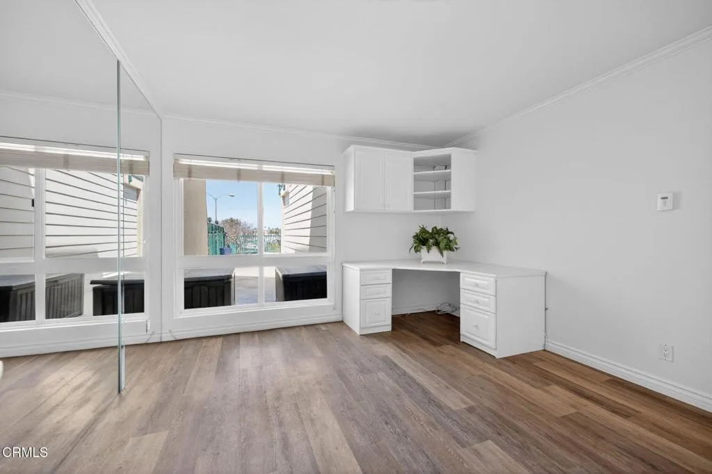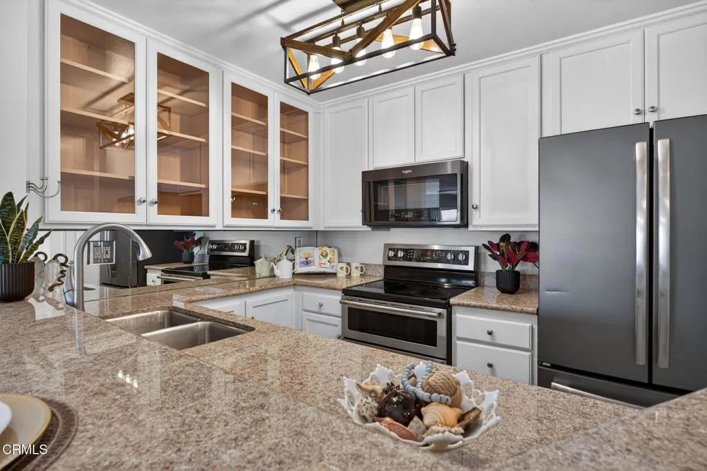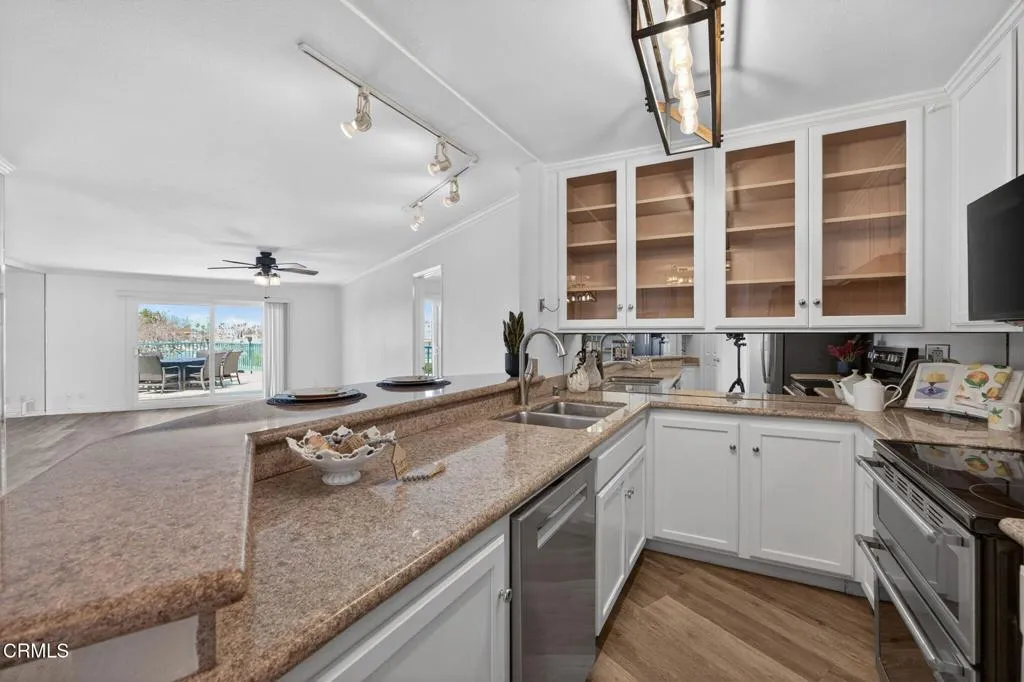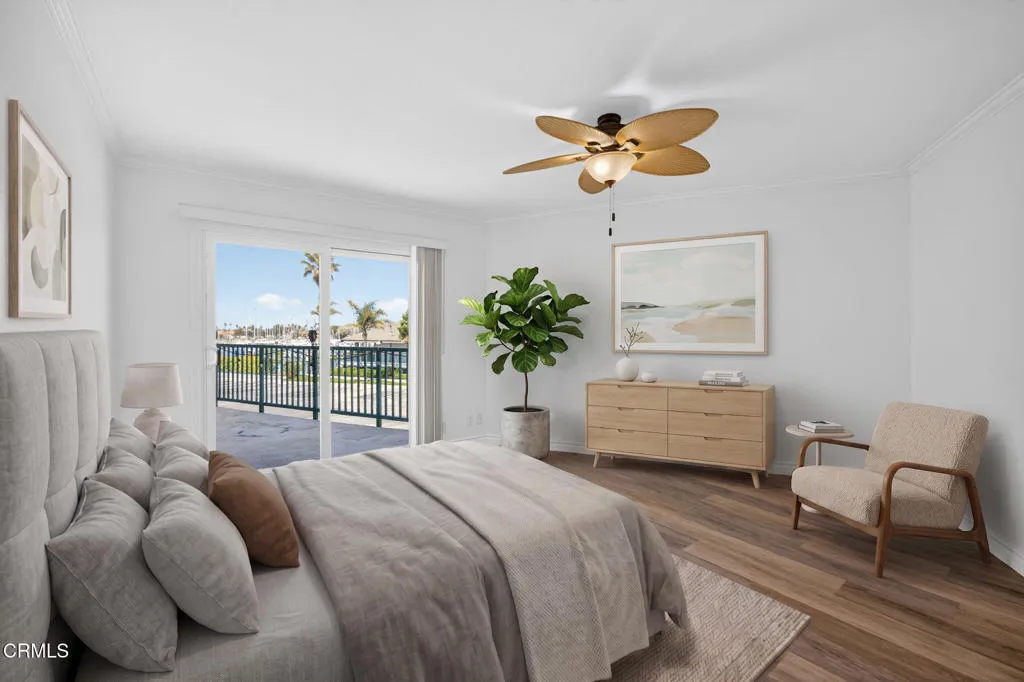 WATERFRONT VIEWS/PRIME LOCATION!!! Welcome home to this wonderful, rarely available, coastal retreat in the gorgeous Channel Islands harbor area. This, large, corner, 2 bedroom 2 bath unit, boasts one of the largest floor plans along with an extended balcony/deck off both the living area and bedrooms. You can relax and unwind or enjoy entertaining taking in the magnificent views, ocean breezes and stunning sunsets. Neutral colors, floor to ceiling mirrors, and dual pane windows add to the brightness and expand the views of this turnkey home. Kitchen and bathrooms have been tastefully updated. The kitchen boasts newer stainless appliances including a Bosch dishwasher, microwave, double oven with convection and refrigerator. Enjoy meals at the convenient breakfast bar, dining area or outside al fresco. White cabinetry & crown molding throughout. Updates include luxury vinyl flooring, ceiling fans, newer lighting and bathroom tub/shower enclosures. The primary suite is it's own oasis with sliders leading to a private balcony and water views. The primary bathroom has a large tub for relaxing, separate vanity area and a large walk-in closet with built-in shelving. A large guest bedroom includes desk area and a walk in closet. This complex provides a secure lobby, indoor corridors & has an elevator for your convenience as well as laundry facilities on each level. Assigned, enclosed parking for your unit includes 2 spaces & some garage storage. There is ample outdoor parking for your guests. Impressive amenities include, several heated pools, spa, gym, sauna, tennis courts, club h