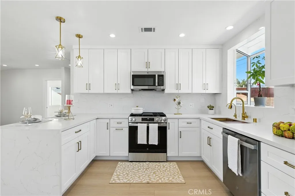 HUGE PRICE REDUCTION!!! Welcome Home! This beautifully remodeled 3-bedroom, 1-bath home has been designed for cozy and happy living. The kitchen boasts white quartz countertops. Brand new double-door fridge, dishwasher, and gas stove-perfect for everyday meals or entertaining. Gorgeous white oak flooring flows throughout, while the updated bathroom features sleek porcelain finishes. Step outside to your private backyard oasis-ideal for family gatherings and summer barbecues. Enjoy lush orange and lime trees and relax under your own palm tree. Located close to freeways, schools, and shopping, this home offers both comfort and convenience. Come and see it-your dream home is waiting!